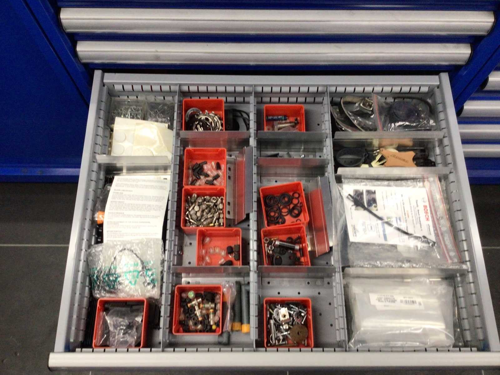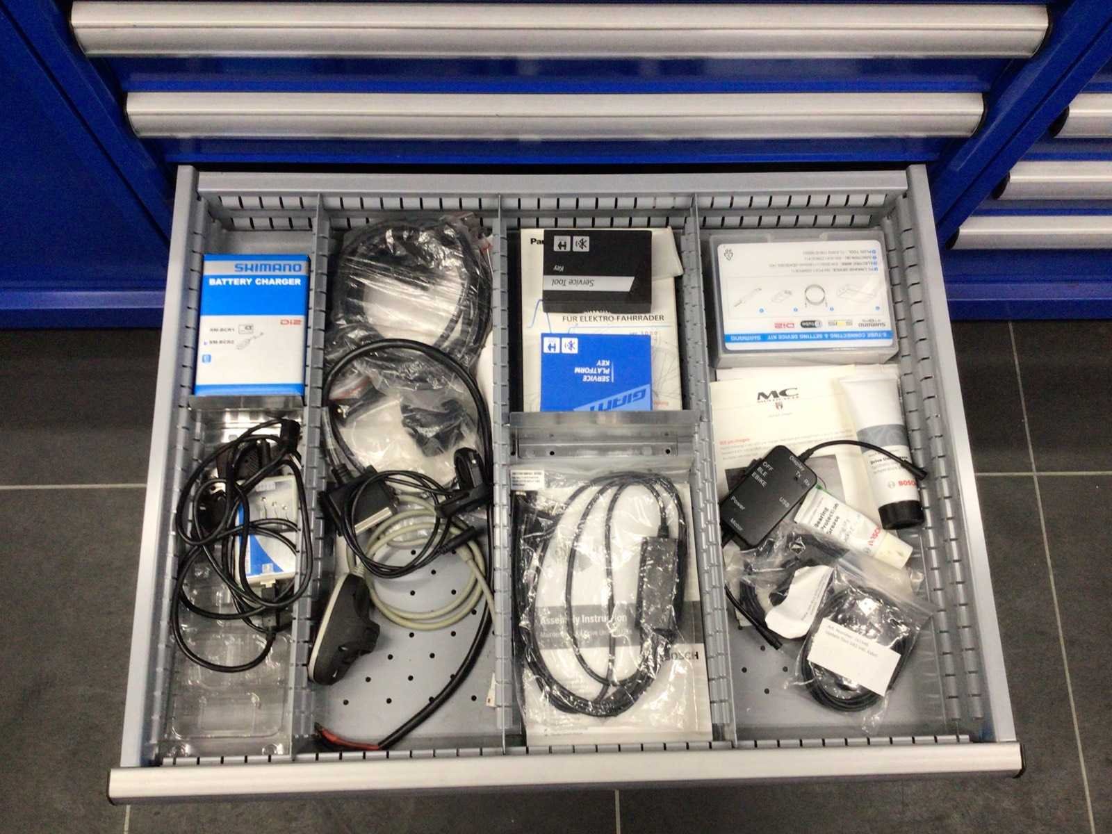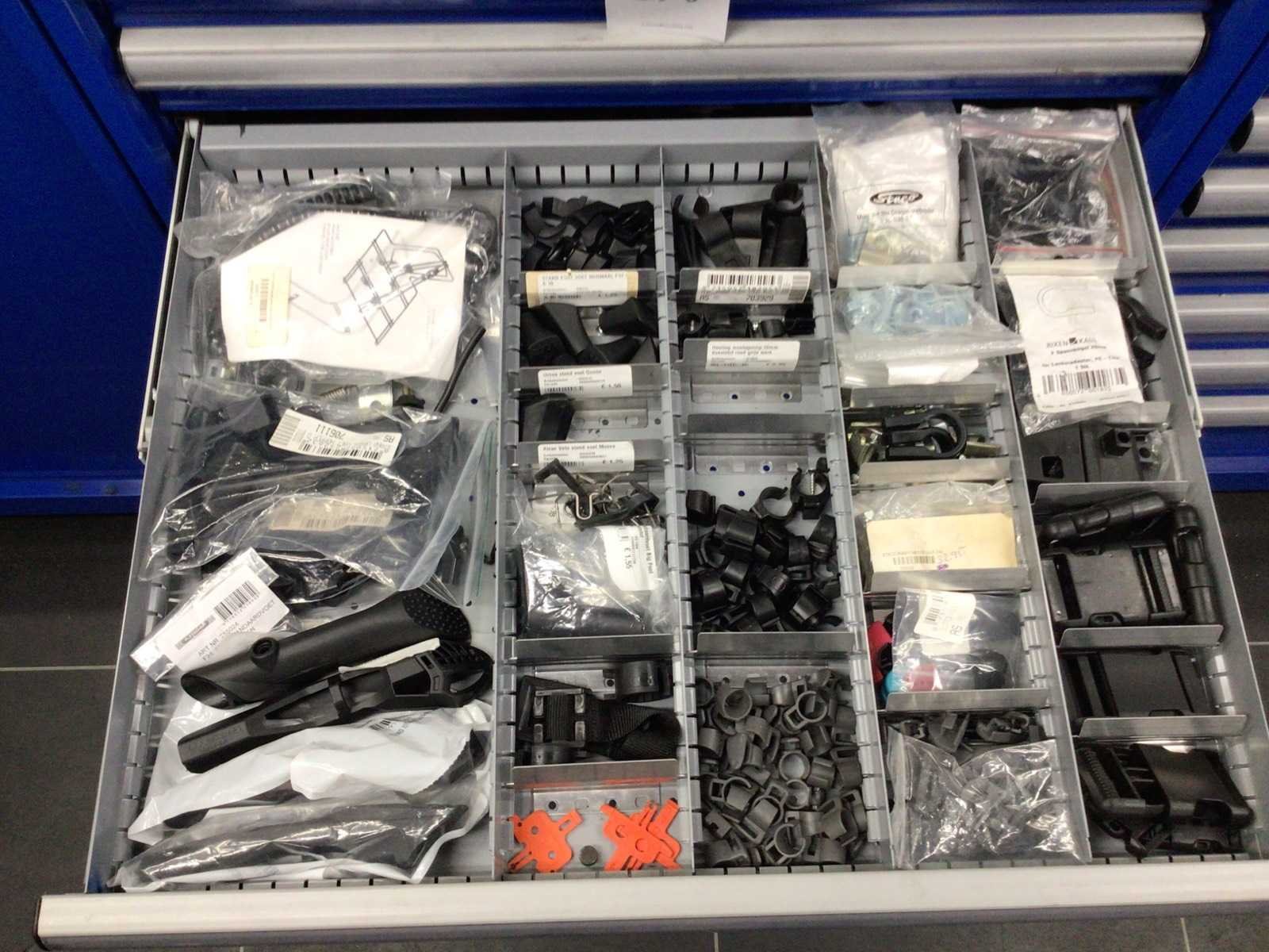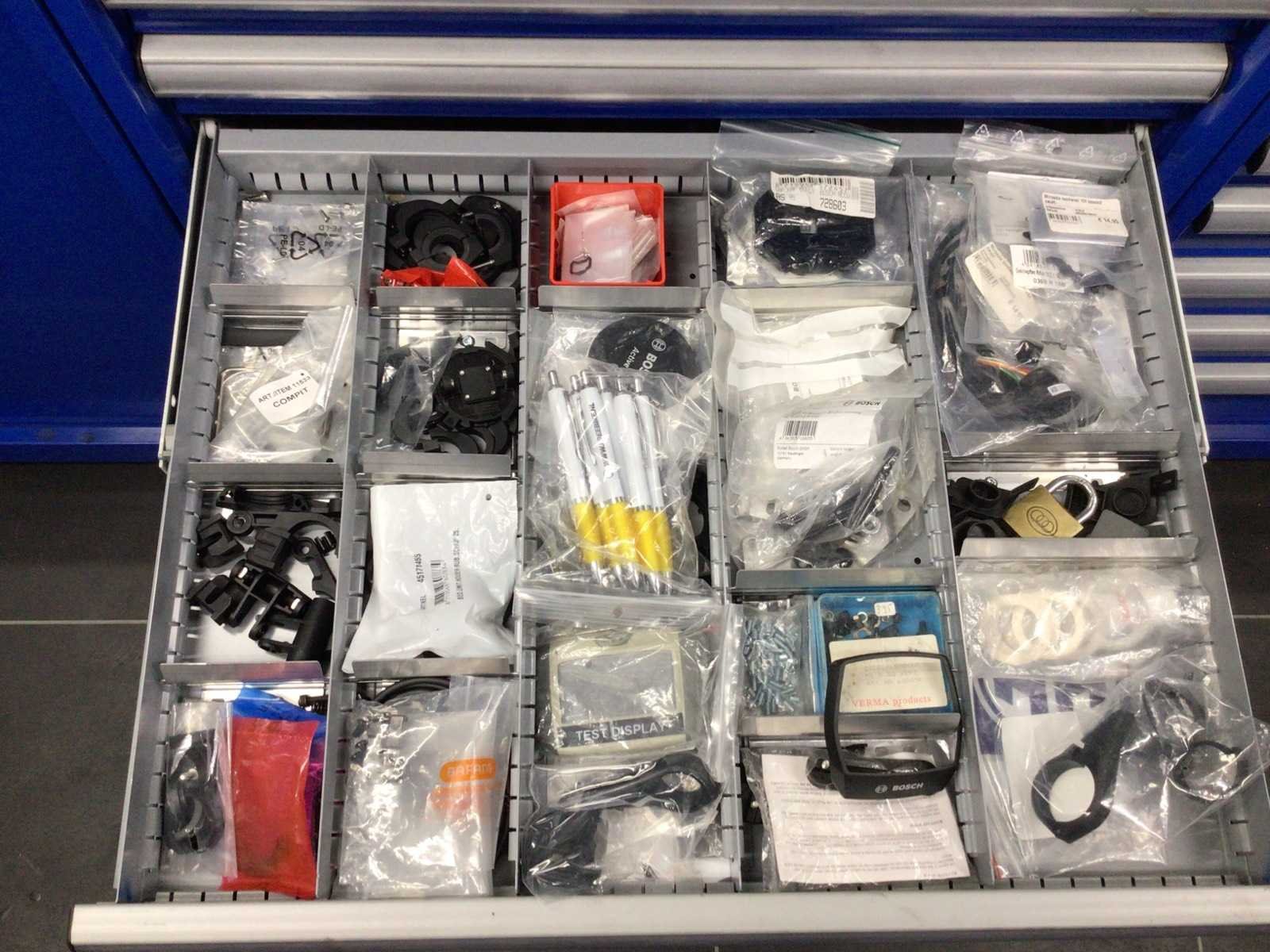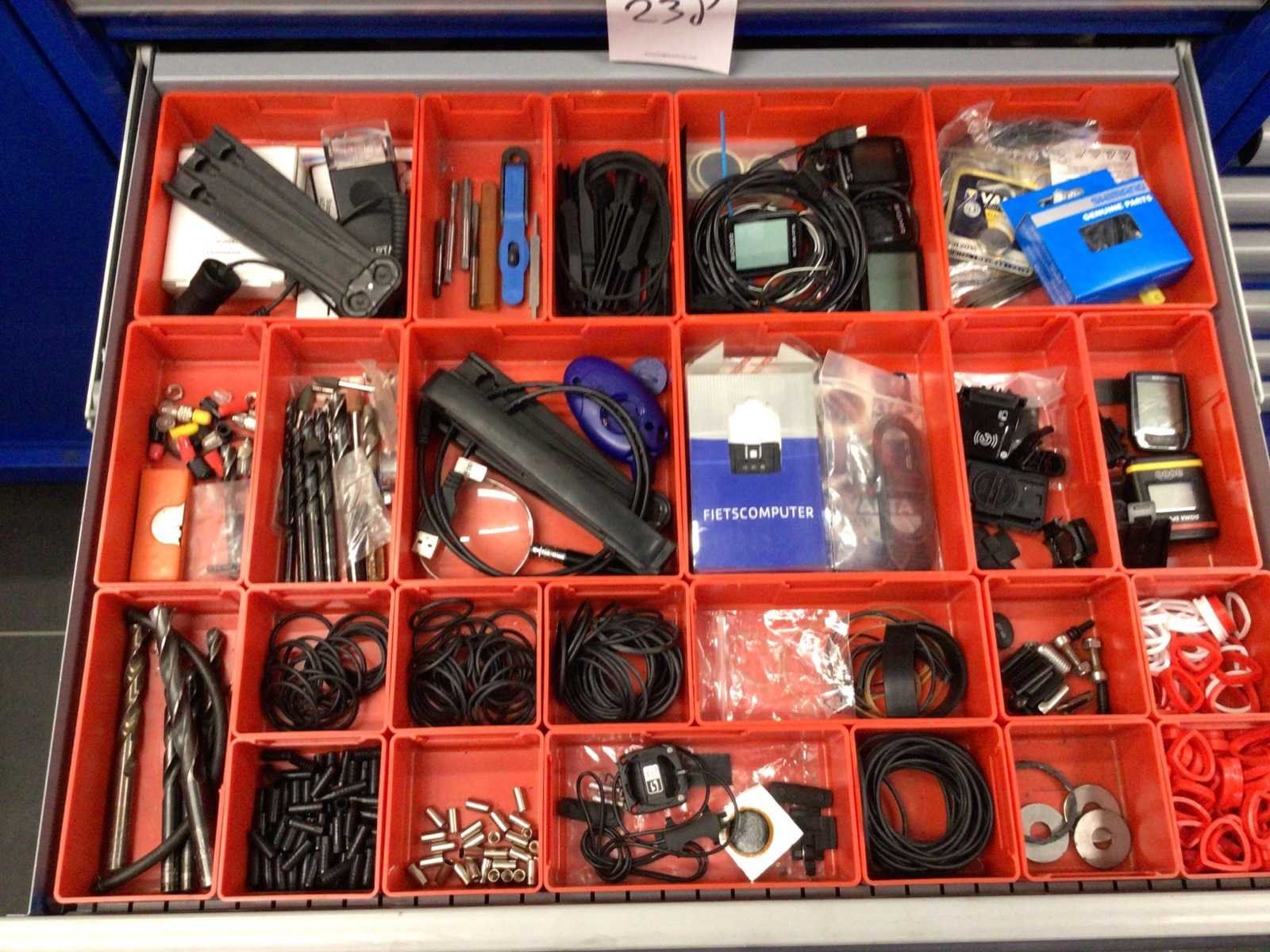 Partij fietsonderdelen in 8 laden