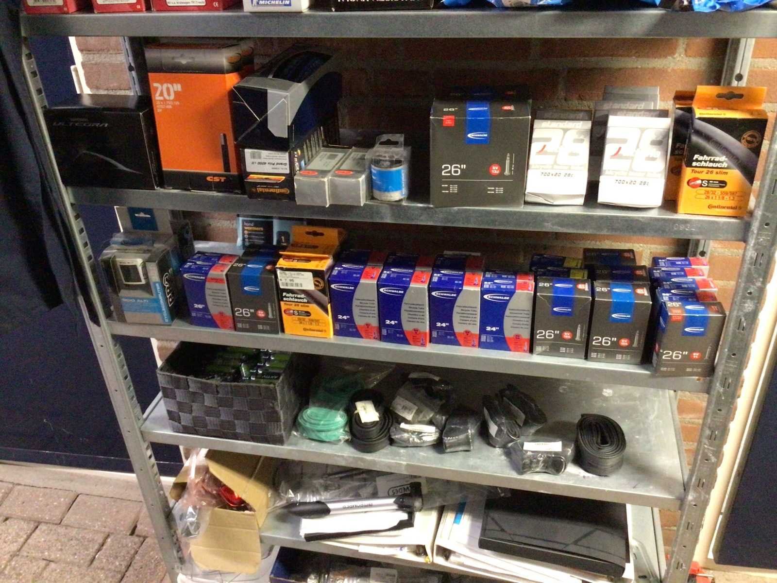 Partij fietsonderdelen in stelling