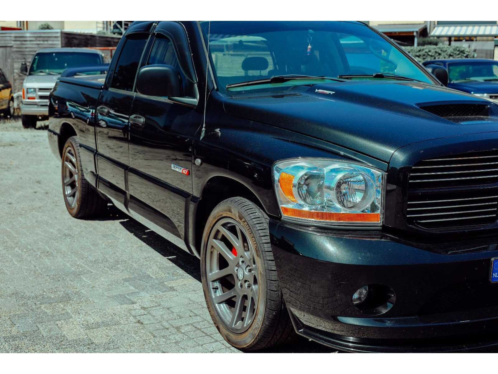 Dodge Ram SRT-10. Pick-up truck Uitgerust met de 8.3-liter V10-motor met 500 pk en 712 Nm koppel. Kenteken: 24-VTR-5 Merk: Dodge Type: SRT-10 Bouwjaar: 2006 Chassisnummer: 3D3HA18H46G231298 Afgelezen kilometerstand: 56652km Cilinderinhoud: 8277cc Vermogen (kW): 372kW Brandstof: lpg Datum eerste toelating: 2006-06-12 Datum eerste toelating (NL): 2025-03-08 APK vervaldatum: 2026-02-14 NAP status: Onlogisch Transmissie: Automaat Aantal zitplaatsen: 5 Kleur: zwart Bruto BPM (NL): 15806 Rest BPM: 0 Ledig gewicht: 2584kg Laadvermogen: 456kg Vermogen (pk): 506 Aantal cilinders: 10 Carrosserie: Pick-uptruck Emissieklasse: 4 Maximaal trekgewicht ongeremd: 450