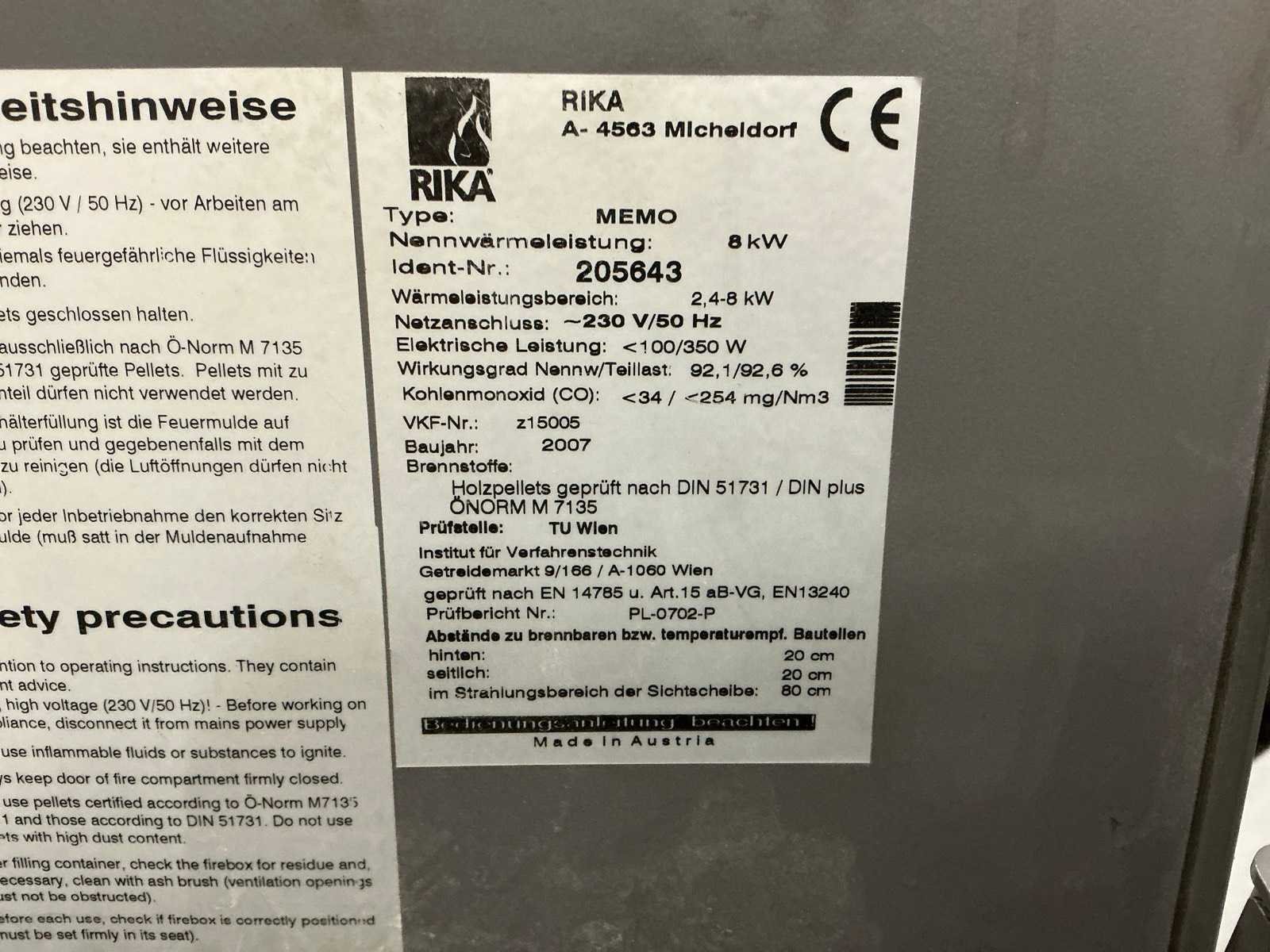 Met buitentemperatuur meter Merk: Rika Type: MEMO Serienummer: 205643 Vrijstaand: true Vermogen: 8kW Lengte: 55 Breedte: 50 Hoogte: 98