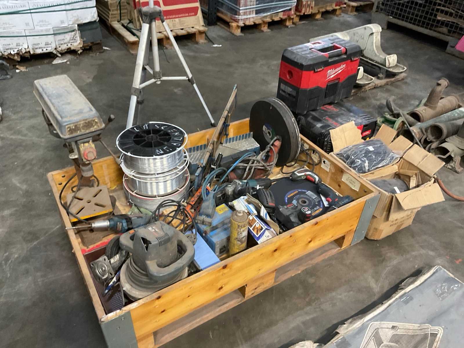Slijptool-lasdraad-tafelboormachine-koffers-etc