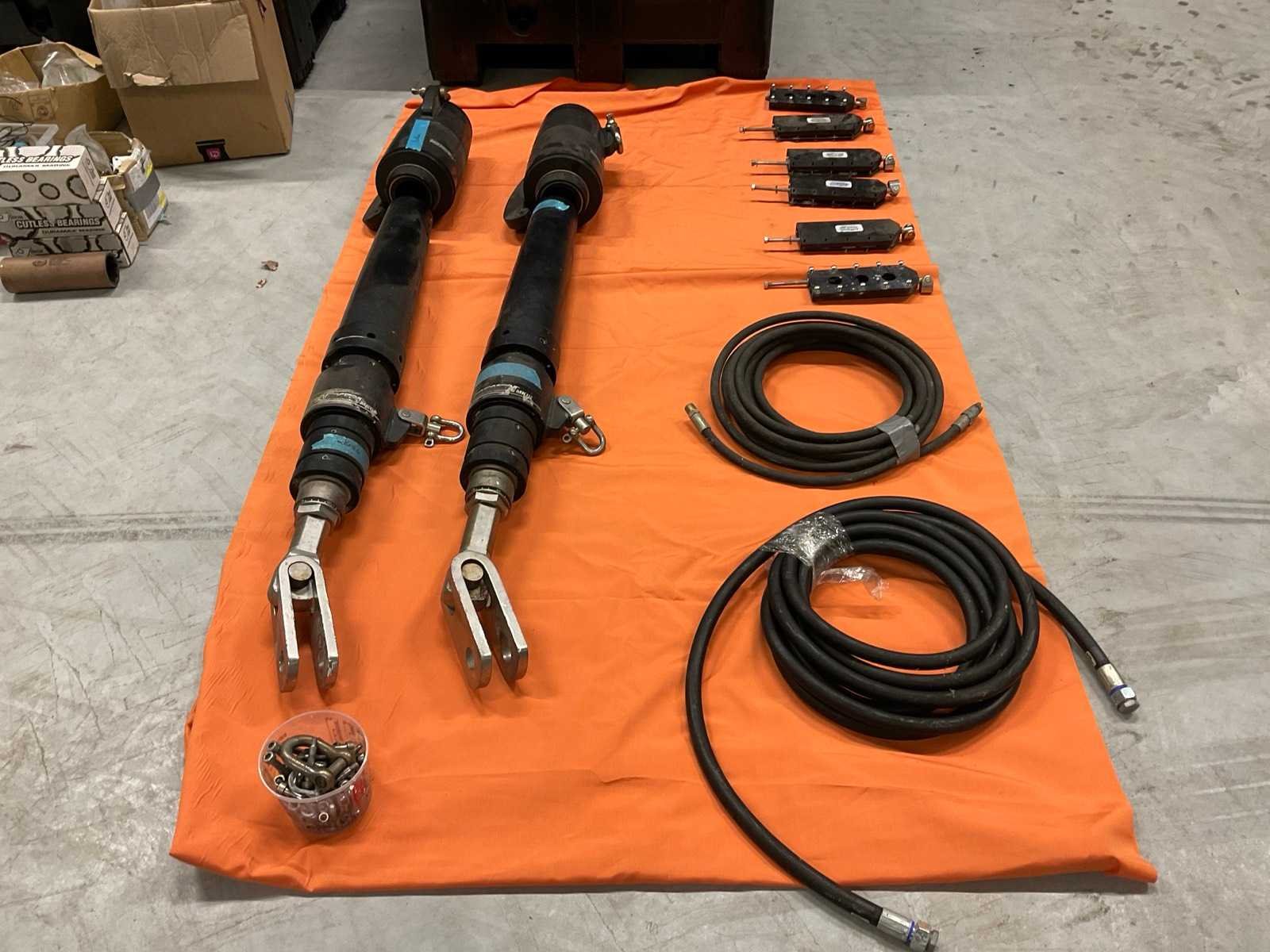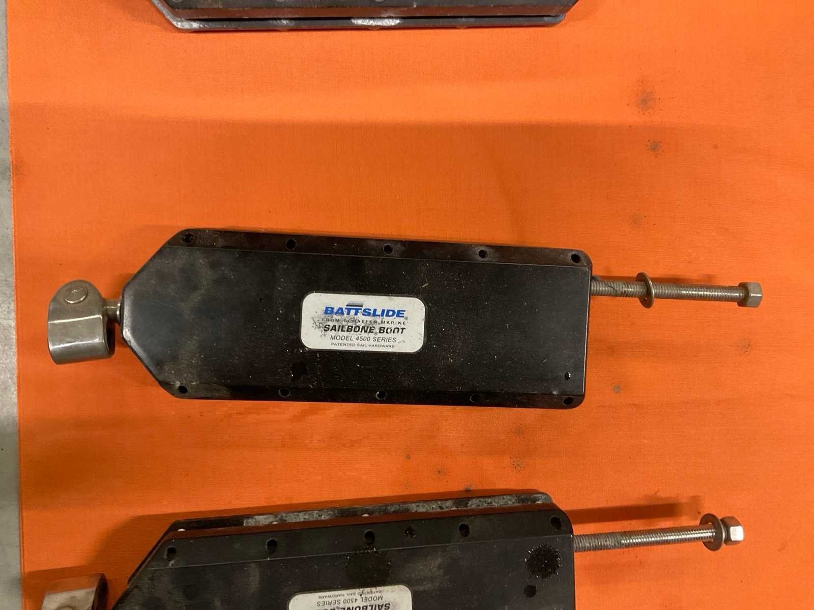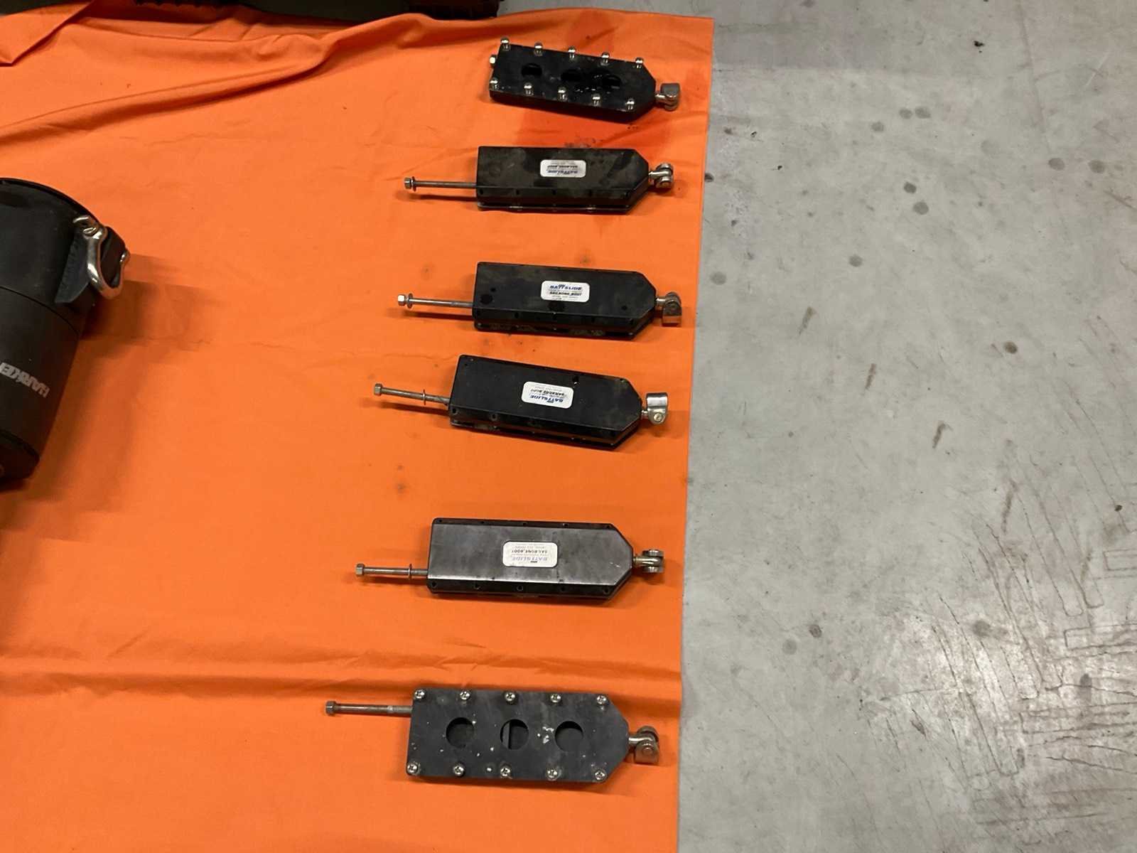 Waaronder 2x Harken MK3 maststeun, hydrauliek slangen, Battslide 4500 zeil hardware onderdelen. In en inclusief kunststof bak transportafmeting 120x100x80cm