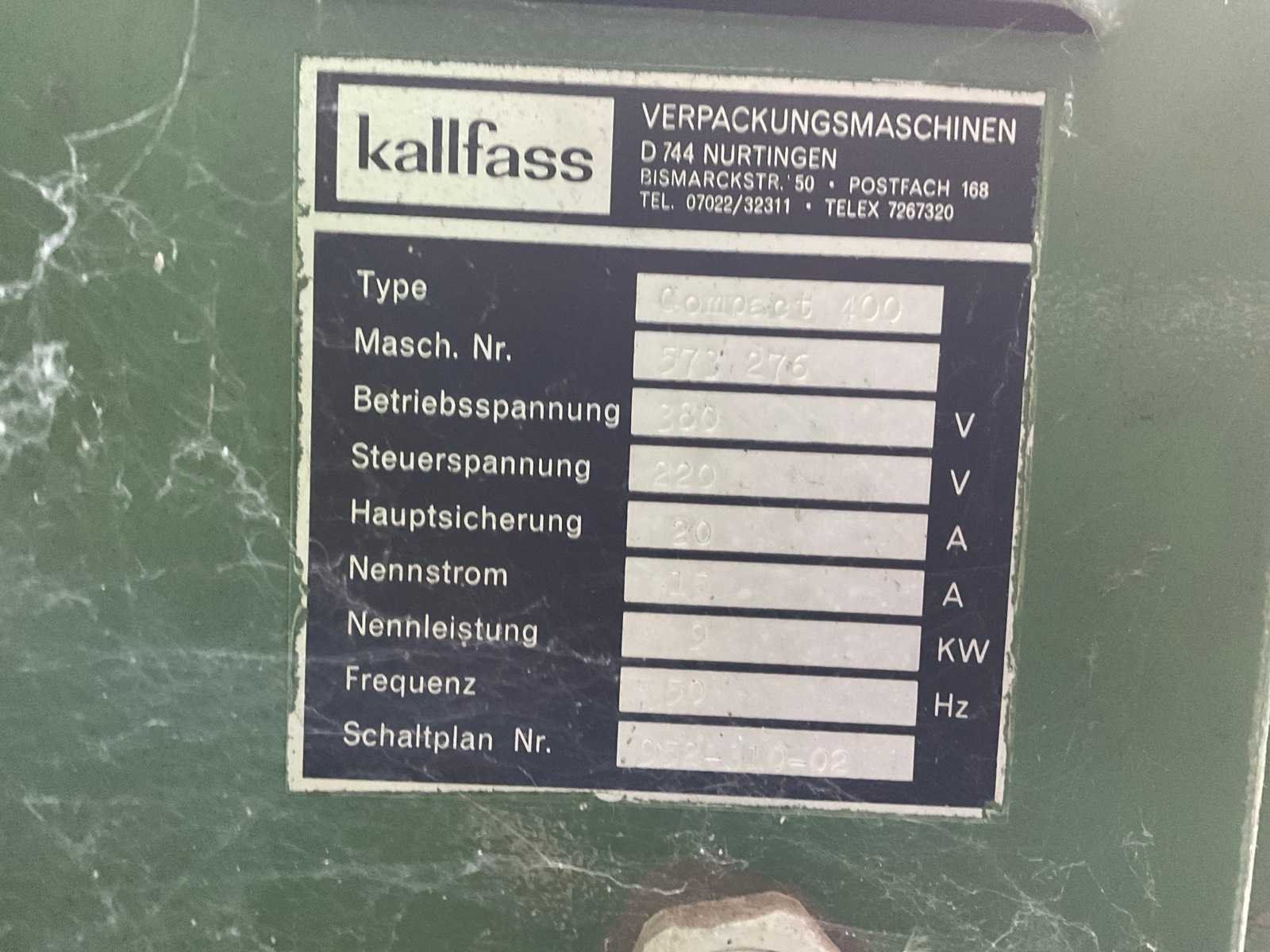 1997 kallfass s.w.650 simplex verpakkingsmachine met krimptunnel