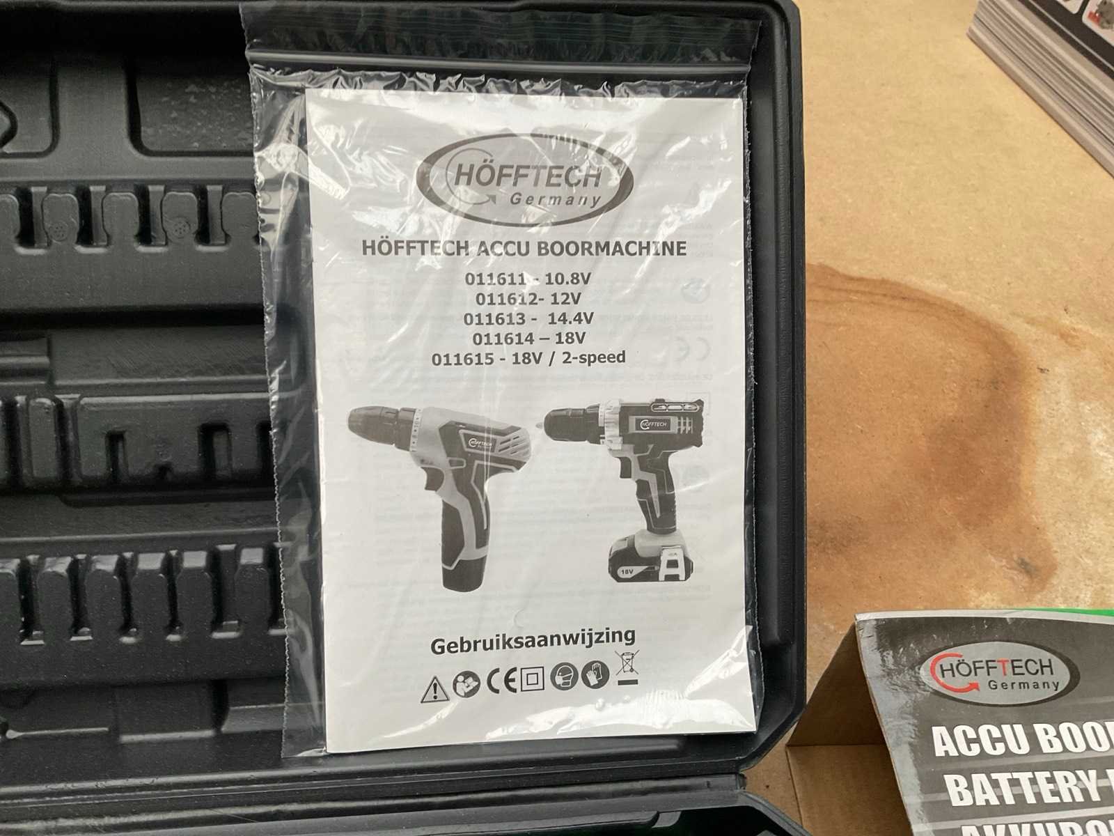 Merk: Hofftech Type: 011615 Accuspanning: 18V Accu type: 1,3 AH L-ion Aantal accu's: 1 Accu lader: true Met koffer: true