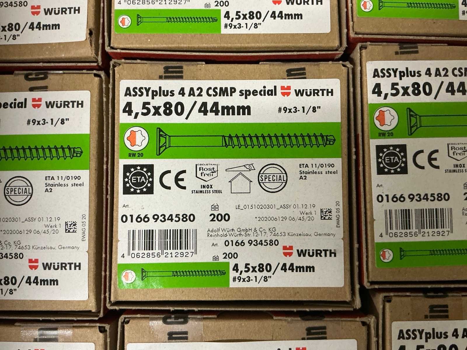 Würth schroef rvs 4,5x80/44 mm (8.000 stuks)