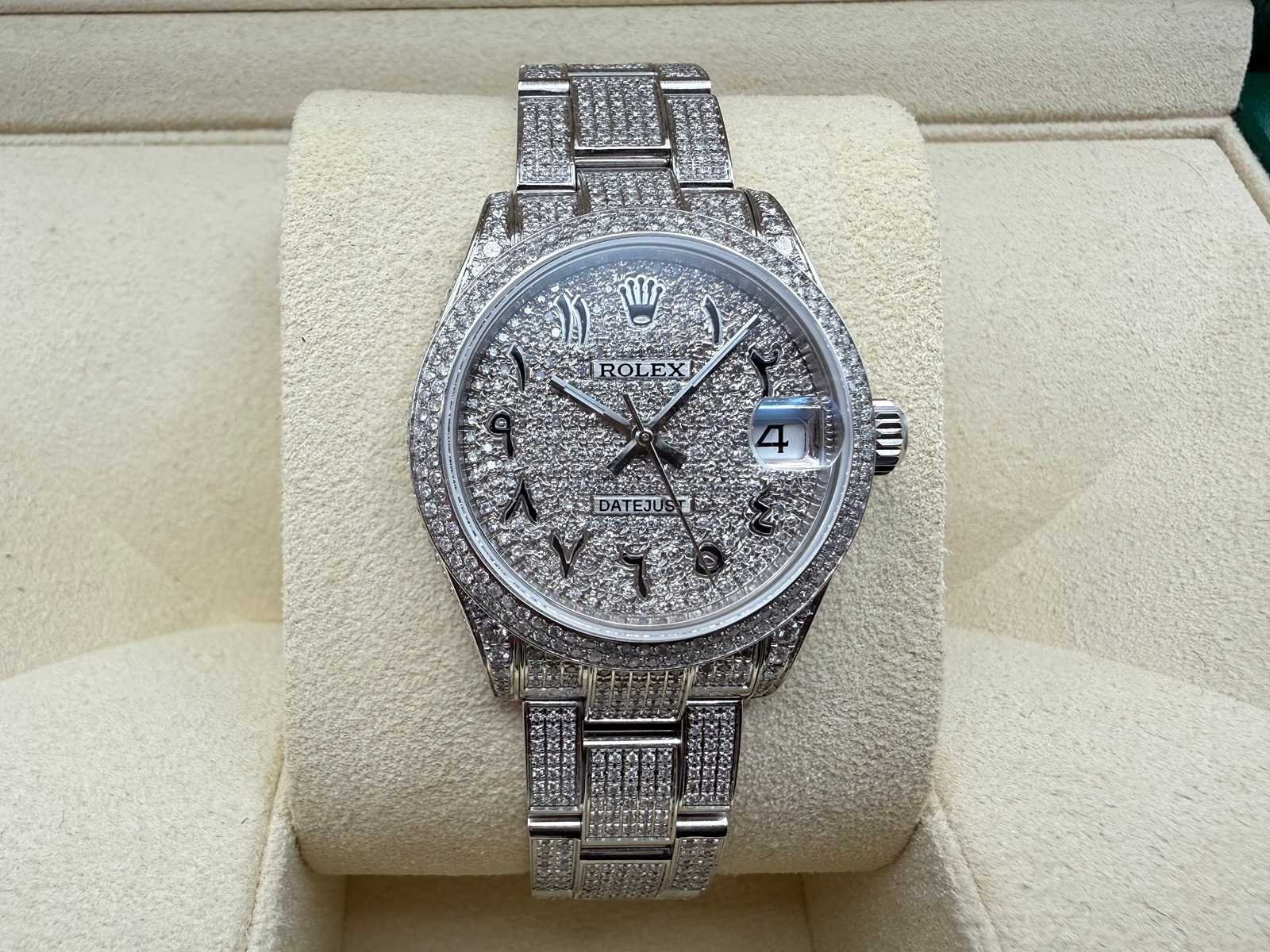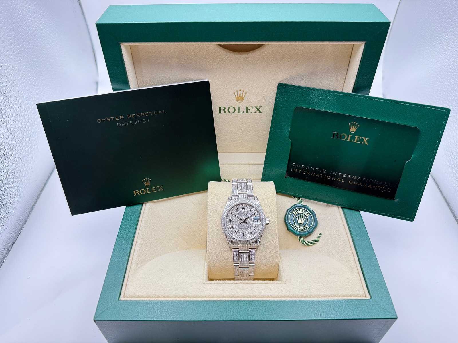 Model: Rolex Datejust 31 Referentie: 278240 Conditie: Zo goed als nieuw Wijzerplaat: Arabische cijfers (Arabic dial) Kastmaat: 31 mm Materiaal kast: Oystersteel Bezel: Diamanten Glas: Saffierglas met cyclops datum Uurwerk: Automatisch Rolex calibre 2236 Gangreserve: ca. 55 uur Armband: Oyster staal Sluiting: Oysterclasp Merk: Rolex Model: Datejust 31 Bouwjaar: 2024 Referentienummer: 278240 Materiaal kast: Steel / Diamonds Materiaal horlogeband: Steel / Diamonds Materiaal sluiting: Steel / Diamonds Wijzerplaat: Arabic Diamonds Kastmaat: 31 mm
