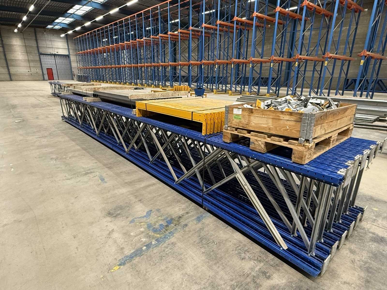 Sectiehoogte is 7900mm; 5-secties; kanaal diepte is 2500mm; 3 europallets per niveau; Reeds professioneel gedemonteerd; word gebundeld en transport klaar uitgeleverd; Merk: Jungheinrich Type: MPB Aantal secties: 5 Sectie diepte: 2500mm Sectie afm. h: 7900mm Aantal staanders: 12
