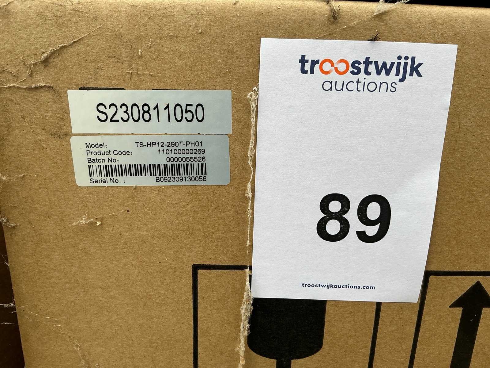 Serienummer: B092309130056. Dit betreft een verpakte unit. R290 refrigerant gas Energy Class: A++++ Heating + Cooling + Hot Water Full DC inverter compressor and fan motor Max outlet temperature: 70 O Wifi smart control Inverter water pump inside Modbus RS485 Full DC Inverter Technology Merk: Thuisstroom Model: TS-HP12-290T-PH01 Kleur: Zwart Gewicht: 175kg Lengte: 141cm Breedte: 52cm Hoogte: 96cm Materiaal: Metaal