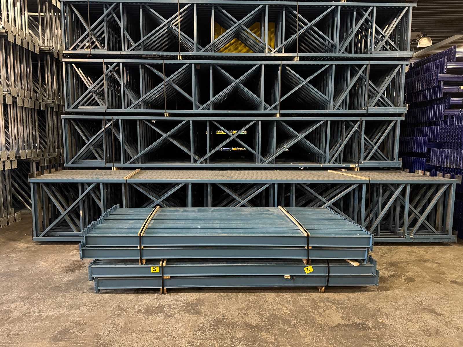 Staander: 585x87x8,5cm Ligger: 270x10x5cm Merk: Hovuma Sectie afm. b: 2700mm Sectie diepte: 870mm Sectie afm. h: 5850mm Aantal staanders: 14 Aantal liggers: 72