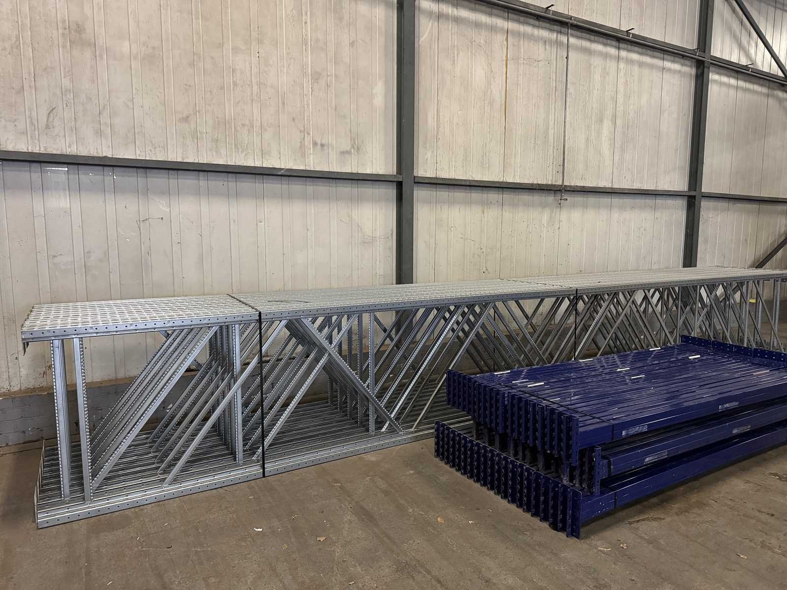 Staander: 820x110x10cm Ligger: 270x10x5cm Merk: Torri Sectie afm. b: 2700mm Sectie diepte: 1100mm Sectie afm. h: 8200mm Aantal staanders: 8 Aantal liggers: 42 Max. sectiebelasting: 6750kg