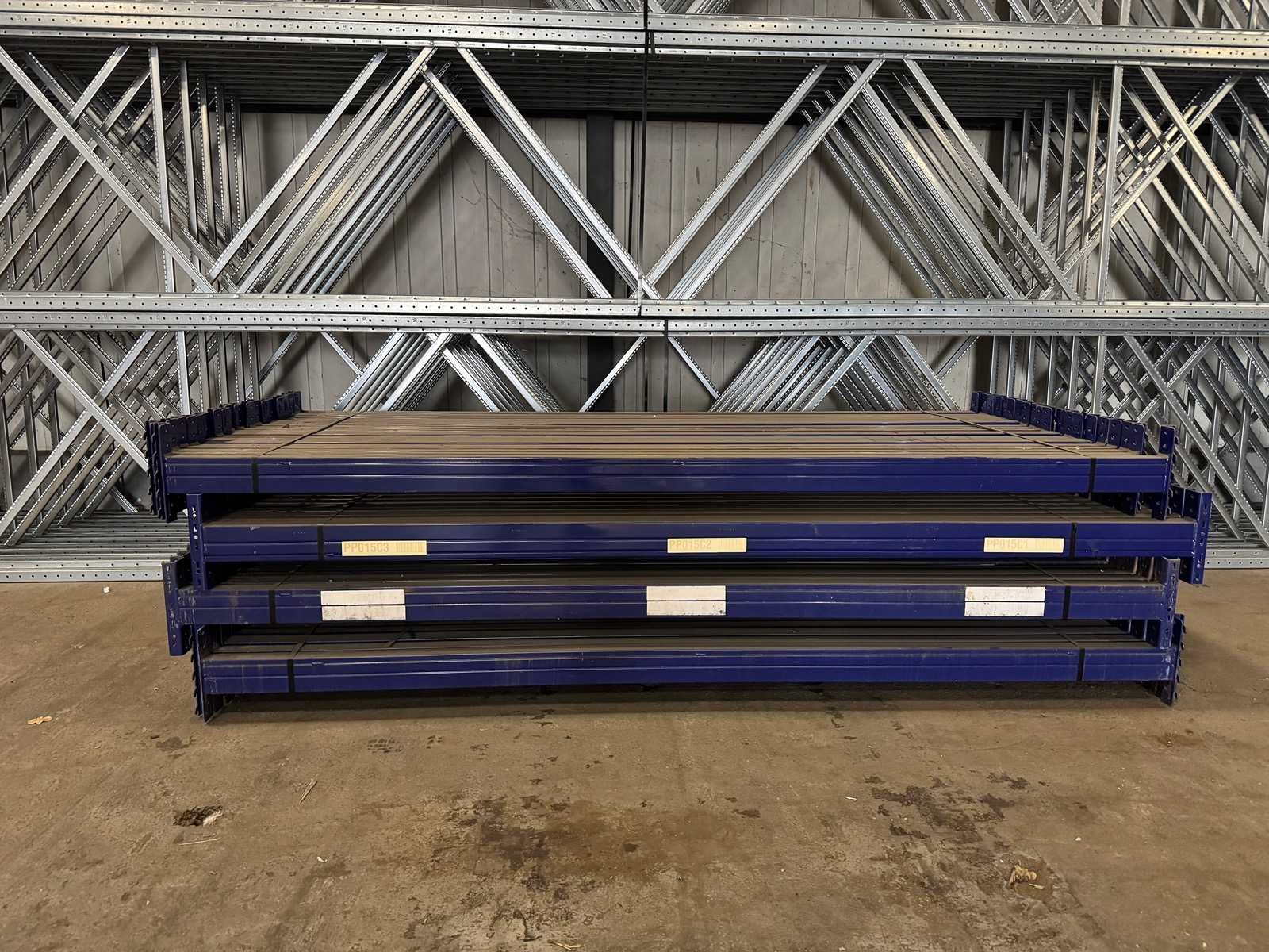 Staander: 820x110x10cm Ligger: 270x10x5cm Merk: Torri Sectie afm. b: 2700mm Sectie diepte: 1100mm Sectie afm. h: 8200mm Aantal staanders: 11 Aantal liggers: 54 Max. sectiebelasting: 6750kg