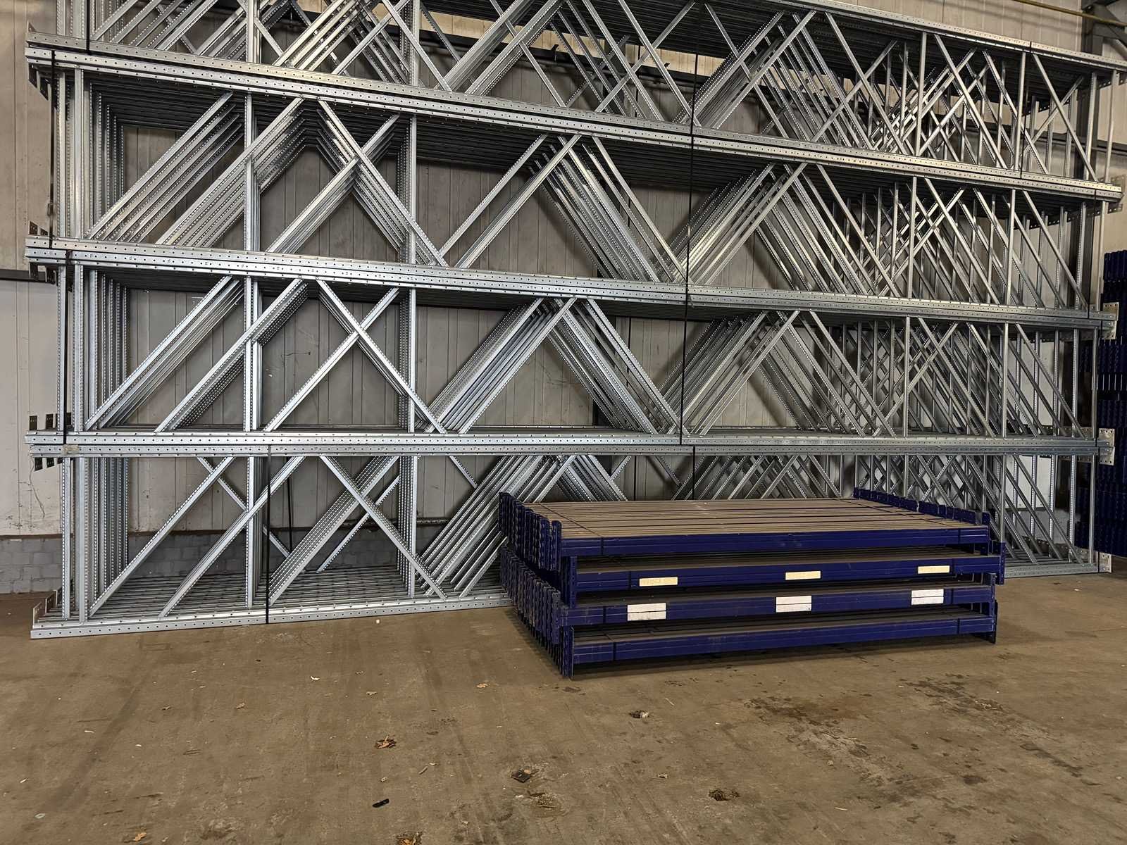 Staander: 820x110x10cm Ligger: 270x10x5cm Merk: Torri Sectie afm. b: 2700mm Sectie diepte: 1100mm Sectie afm. h: 8200mm Aantal staanders: 11 Aantal liggers: 54 Max. sectiebelasting: 6750kg