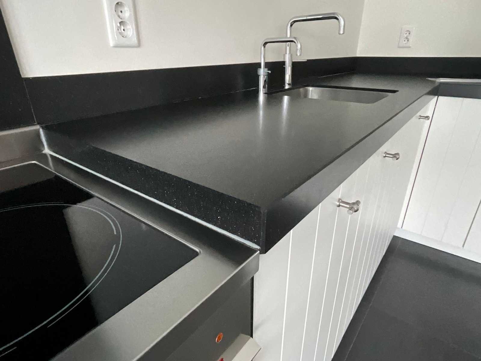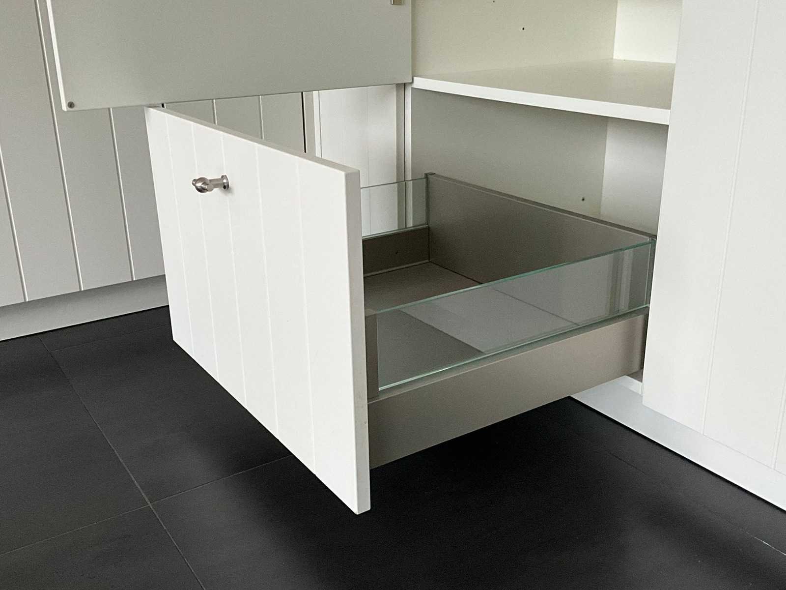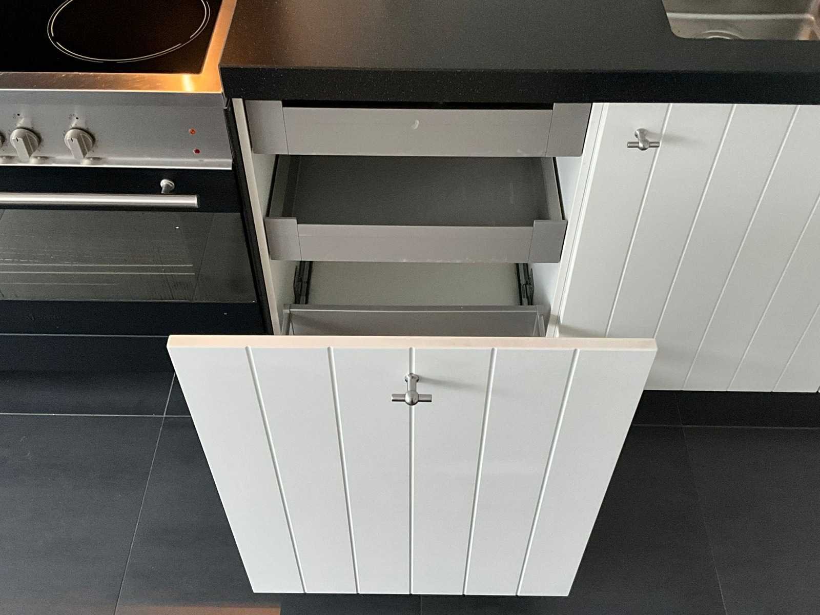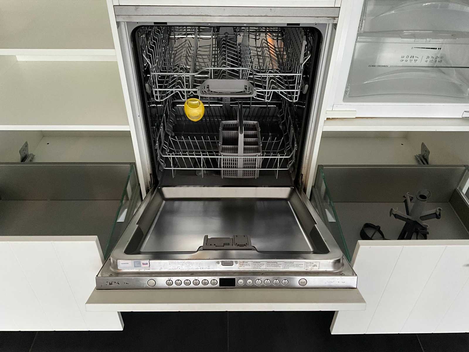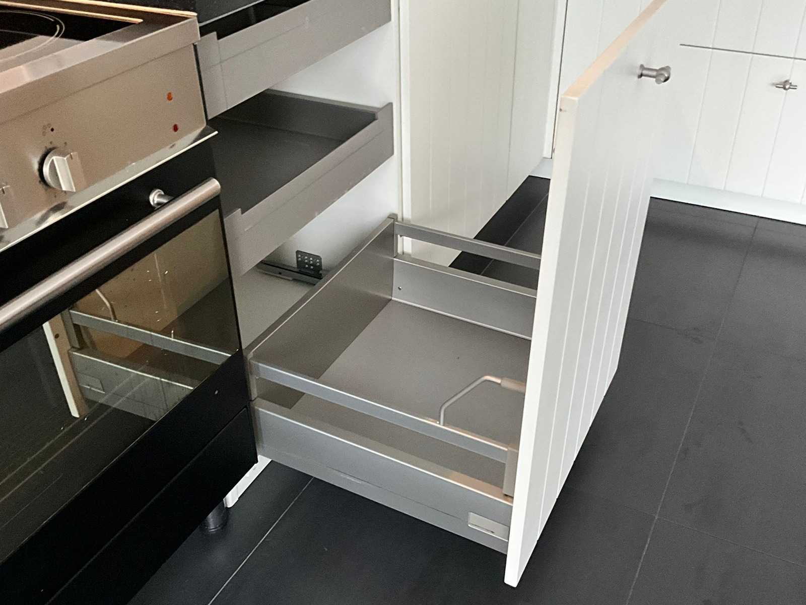 Conditie gebruikt; ingepakt op 4 pallets; afmetingen linkerdeel lxb ca. 250x60 cm; afmetingen rechterdeel lxb ca. 200x60 cm; Reeds gedemonteerd en ingepakt op pallets. (afstapelen, omruilen of statiegeld per pallet); Pallets zijn niet inbegrepen; statiegeld betalen bij afhalen, of pallets afstapelen; werkblad niet ingepakt op pallets Let op; Afzuigkap motortje vastgelopen en de binnenkant van deur koelkast onderste bak om flessen in te zetten is afgebroken. Type keukenopstelling: Hoekkeuken Aanrechtblad: Hardsteen Warmwaterkraan: Quooker Softclose: true Oven: AEG Afzuigkap: Aanwezig Hoofdkleur: Premium wit