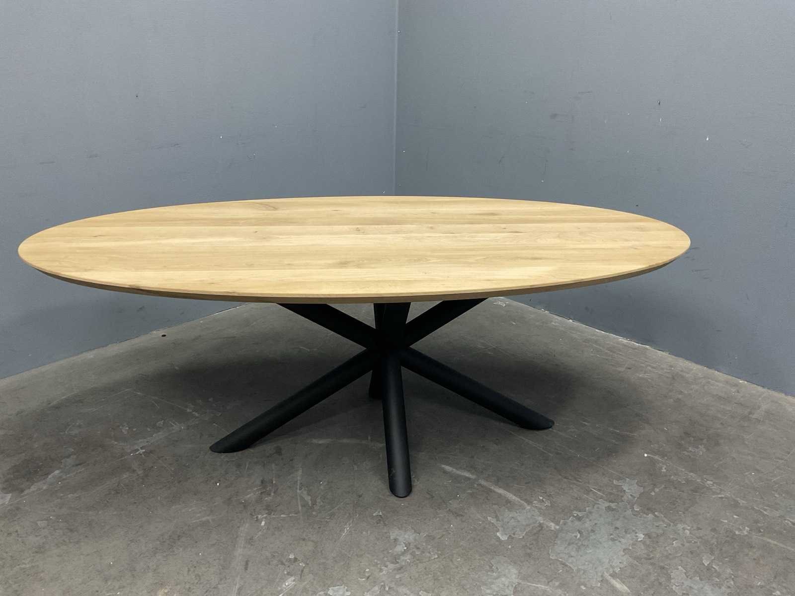 Ovaal eiken eetkamertafel 220x110x79 cm met onderstel spin