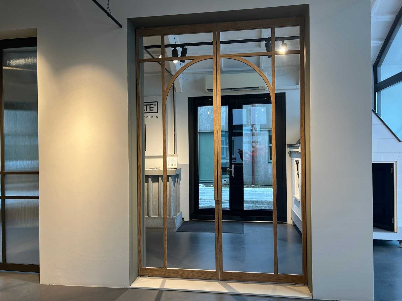 Pivotdeur Merk: Skygate Beglaasd: true Afmeting h: 2805mm Afmeting b: 1834mm Hout: true