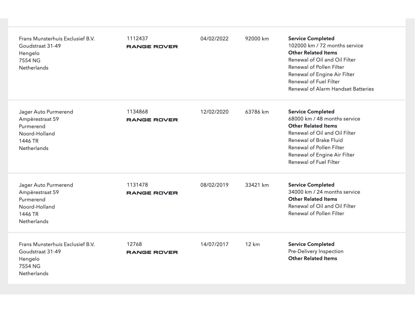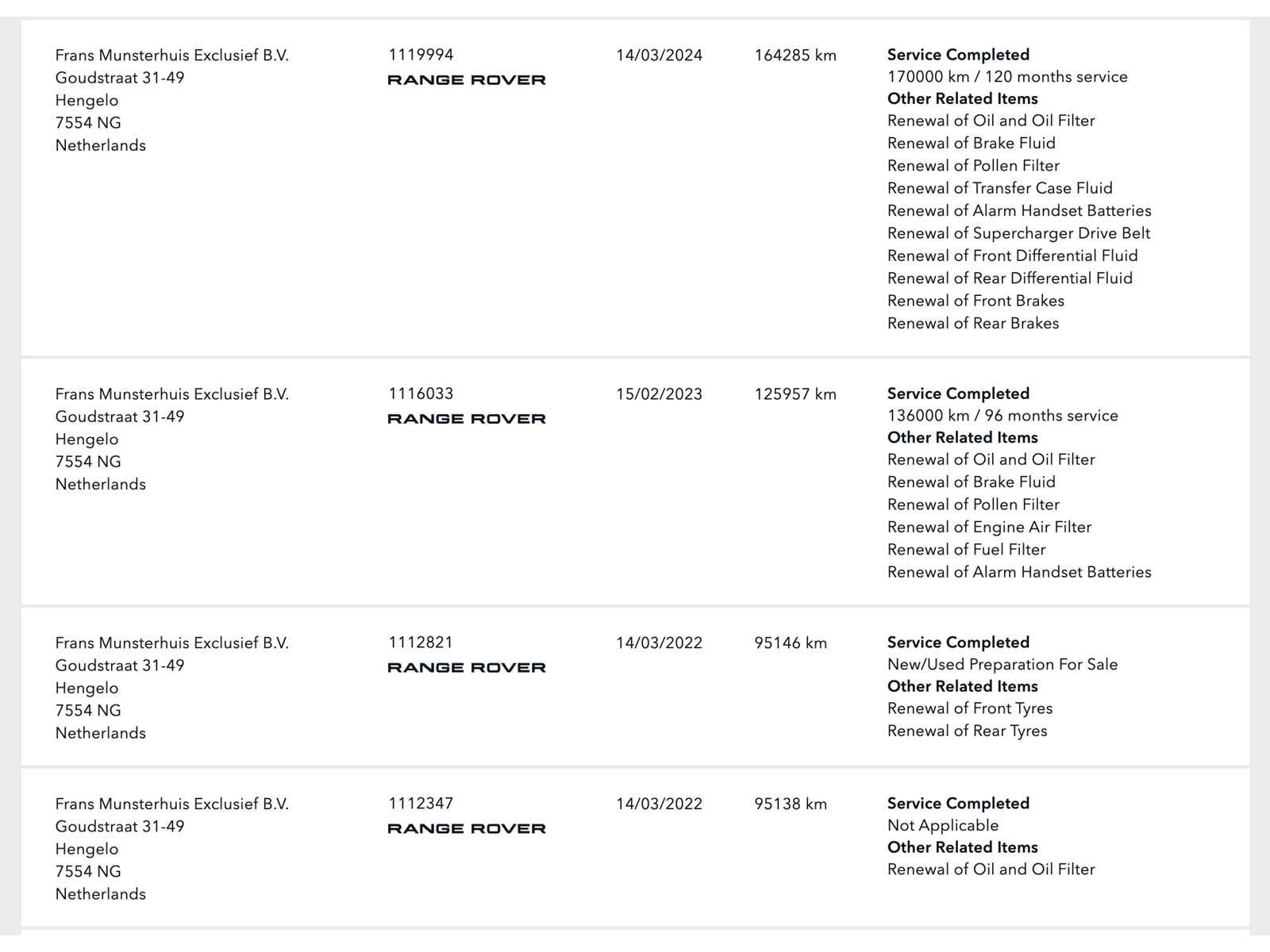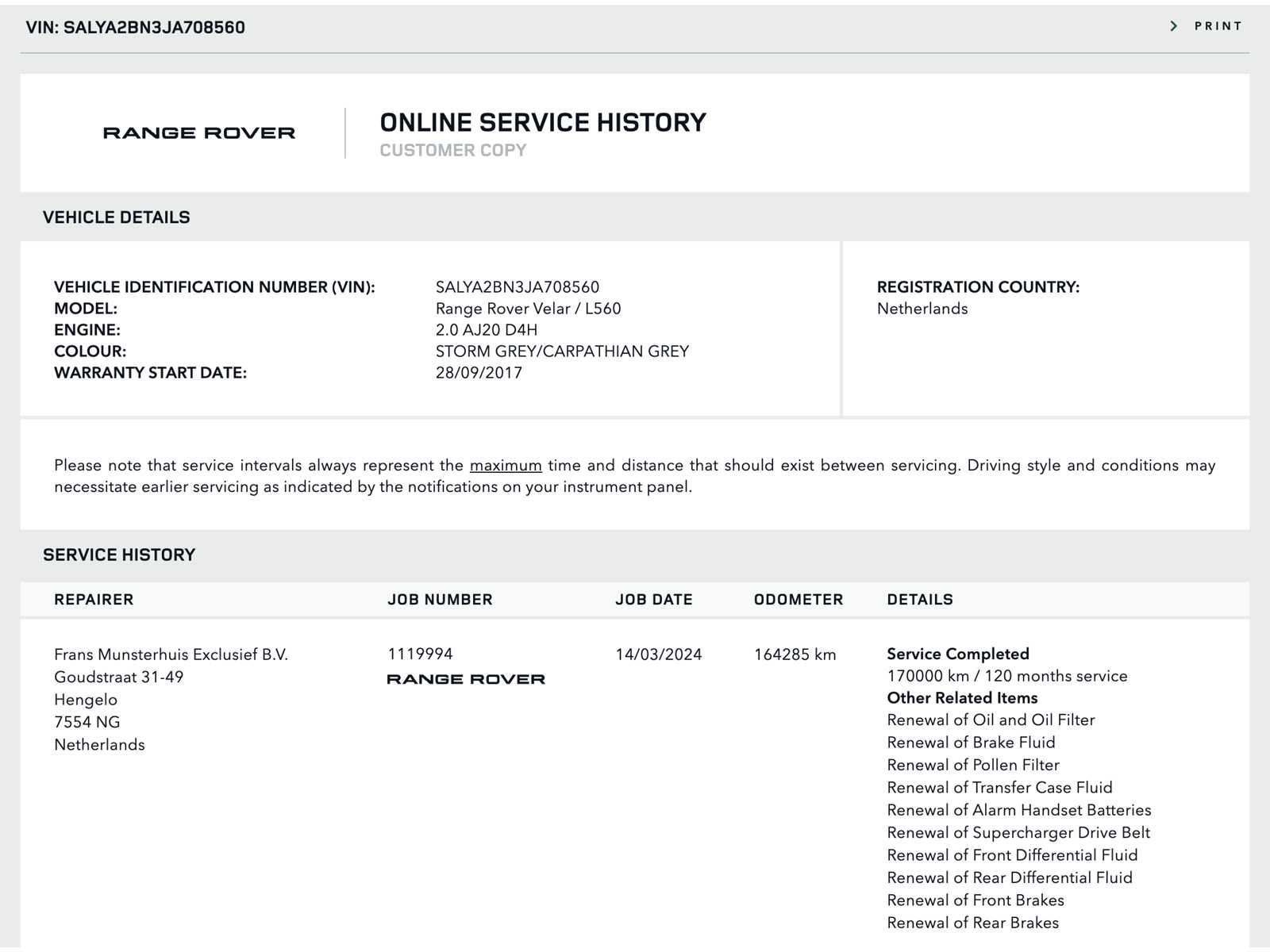 LET OP! Voor Nederlandse kopers en kopers van buiten de EU komt de Rest-BPM er nog bij, deze verschijnt later op de factuur en bedraagt €4.106,-. Dus, totale biedprijs + €4.106,-. De totaalprijs bij het bieden is dus excl. BPM! (This is only relevant for Dutch buyers and buyers from outside the EU). Important: international buyers (within the EU) can purchase this lot without the remaining amount Dutch BPM tax ('rest-BPM'). For this lot, buyer pays the BPM tax as a deposit and after infinite registration of this lot in your EU-country within an agreed time frame, the deposit will be refunded. Dutch and non-EU buyers will pay the BPM via the invoice of this lot. Kenteken: PX-296-F Merk: Land Rover Model: Range Rover Velar Type: 2.0 I4 AWD R-Dynamic SE Afgelezen kilometerstand: 198691km Cilinderinhoud: 1999cc Vermogen (kW): 177kW Brandstof: Diesel Chassisnummer: SALYA2BN3JA708560 NAP status: Logisch Datum eerste toelating: 2017-09-29 Datum eerste toelating (NL): 2017-09-29 APK vervaldatum: 2026-03-14 Vermogen (pk): 241hp Aandrijving: Vierwielaandrijving Aantal zitplaatsen: 5 Kleur: grijs Transmissie: Automaat Stuurwiel: Links gestuurd Emissieklasse: 6 Aantal deuren: 5 Ledig gewicht: 1811kg Bruto BPM (NL): 17848€ Aantal cilinders: 4 Carrosserie: SUV Nationaliteit documenten: Nederlandse kentekendocumenten Onderhoudshistorie: ja volledig