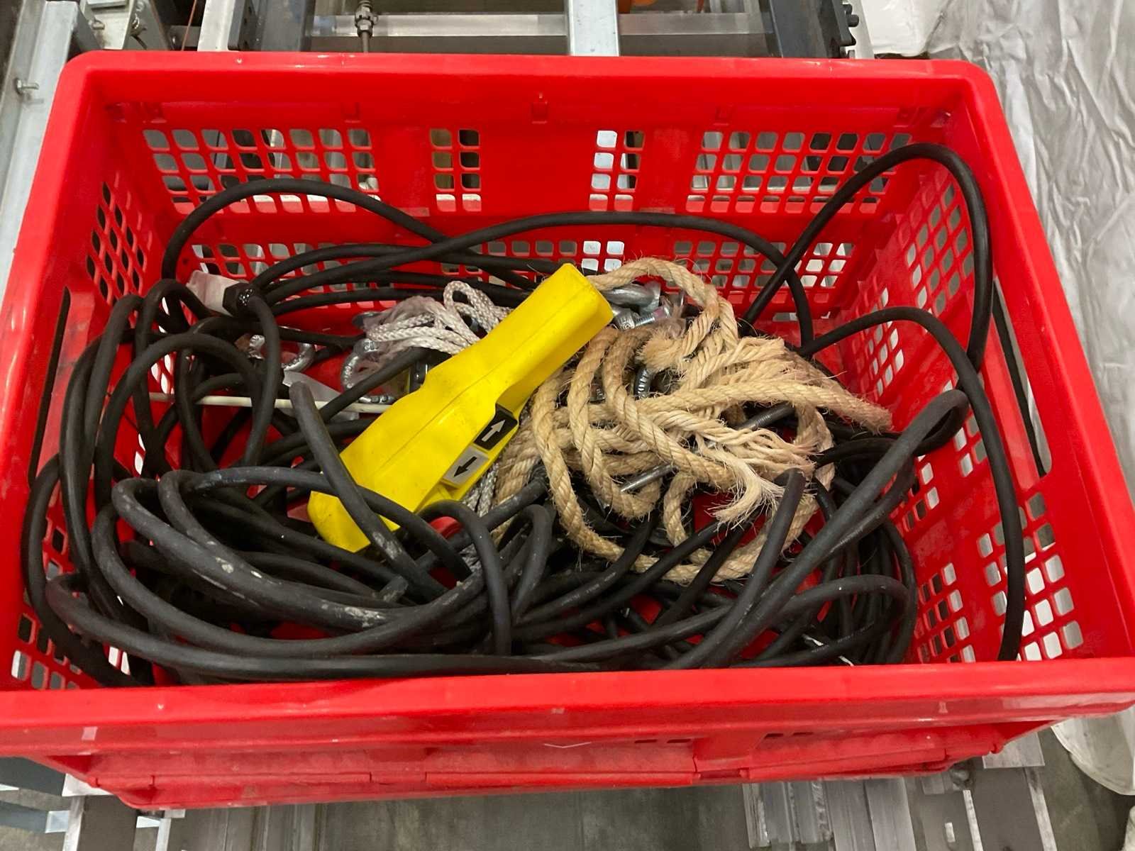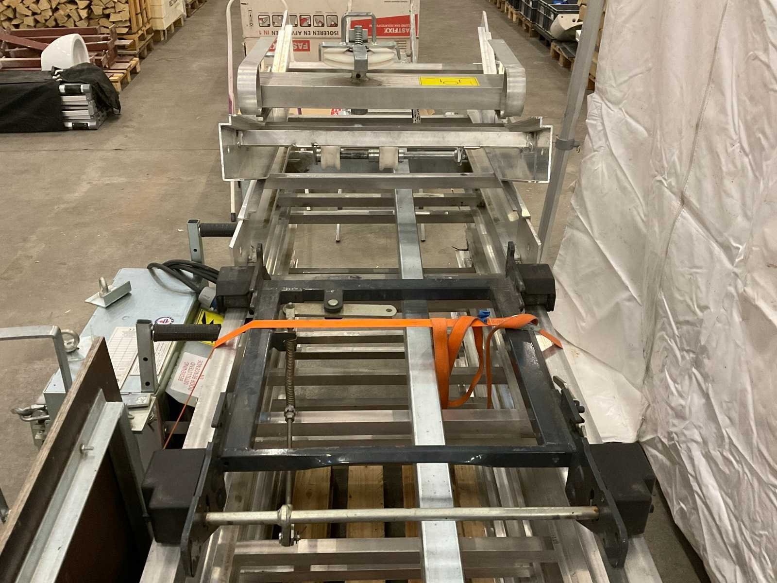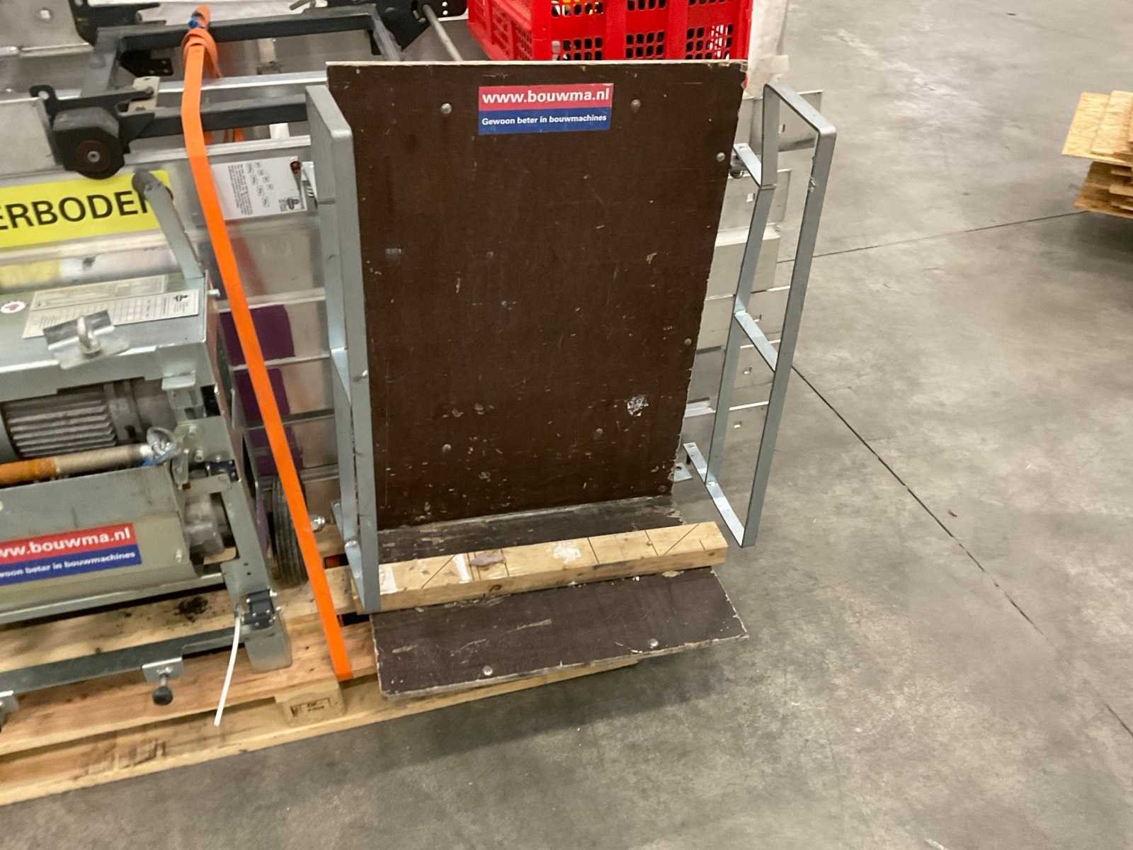 6 aluminium ladderelementen van 2 meter 1 aluminium ladderelement van 1 meter 1 topstuk met kabelschijf 0.3 meter 1 afneembare drukknopbediening en bovenafslag Ø 6 mm gegalvaniseerde hijskabel 1 universeel plateau met demontabele kanthekken 1 aluminium knikstuk, verstelbaar van 22-45°- lengte 1 meter 1 verstelbare middensteun 1 motorunit met een hefvermogen van 200 kg Merk: Bouwma Type: BM 200 Bouwjaar: 2021 Max. belasting: 200kg Hefhoogte: 13.3m