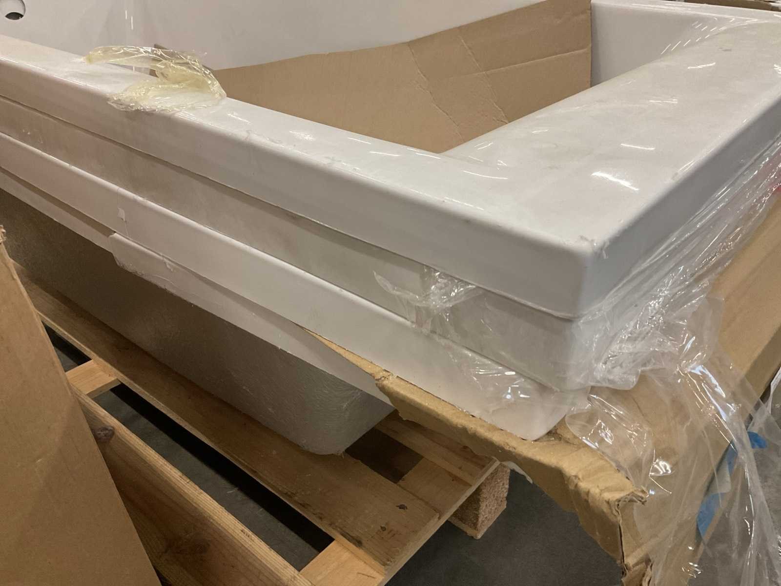 Excl. afvoerplug set en overige toebehoren. Kavel is beschadigd. Model: Galaxy Product type: 150x70cm Kleur: Wit Lengte: 150cm Breedte: 70cm Materiaal: Acryl