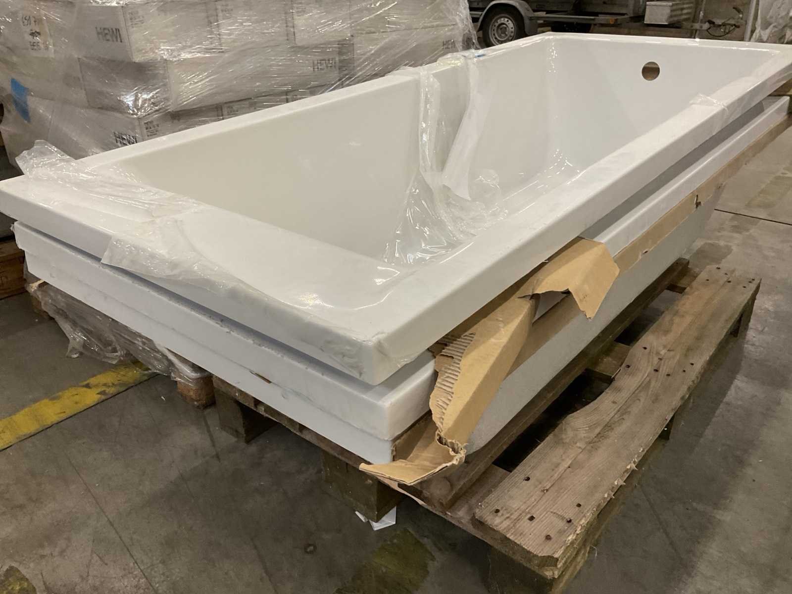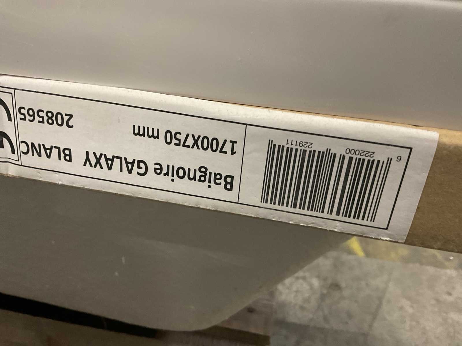Excl. afvoerplug set en overige toebehoren. Kavel is beschadigd. Model: Galaxy Product type: 170x75cm Kleur: Wit Lengte: 170cm Breedte: 75cm Materiaal: Acryl
