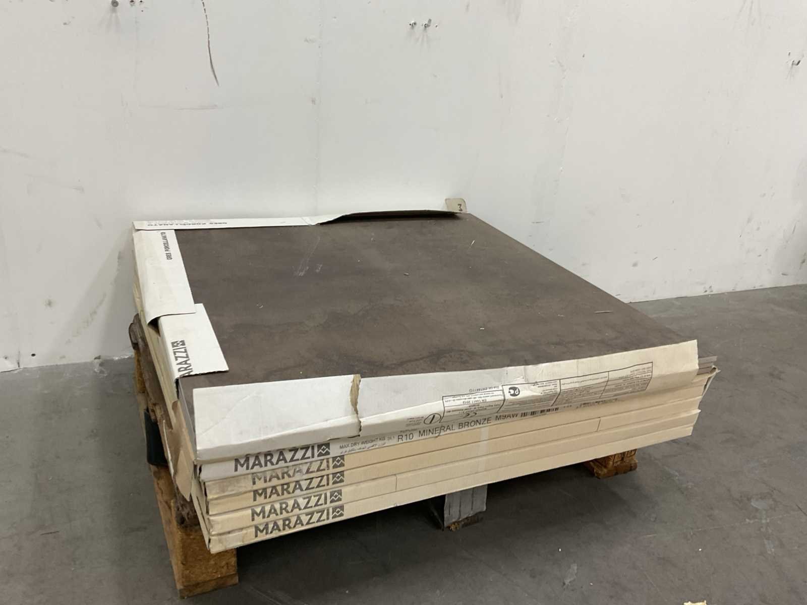 5x dichte verpakking. 1x open verpakking met 3 tegels. Merk: MARAZZI Kleur: MINERAL BRONZE Lengte: 750mm Breedte: 750mm Aantal pakken: 6