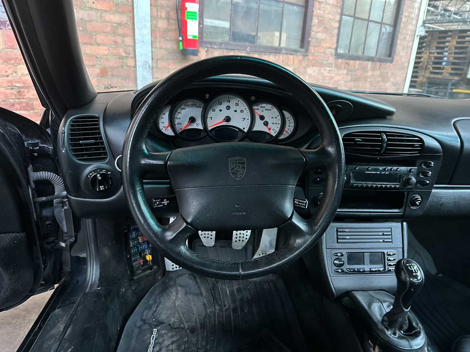 Merk: Porsche Model: 911 996 Type: Carrera Coupe 3.4 Brandstof: Benzine Afgelezen mijlenstand: 138796mi Chassisnummer: WP0AA29901S620643 Datum eerste toelating: 2001-01-01 Vermogen (pk): 300hp Aandrijving: Achterwielaandrijving Aantal zitplaatsen: 4 Kleur: Zwart Transmissie: Handgeschakeld Stuurwiel: Links Carrosserie: Coupe Nationaliteit documenten: USA (salvage) title, invoerrechten en BTW zijn vooldaan Onderhoudshistorie: Ja, gedeeltelijk