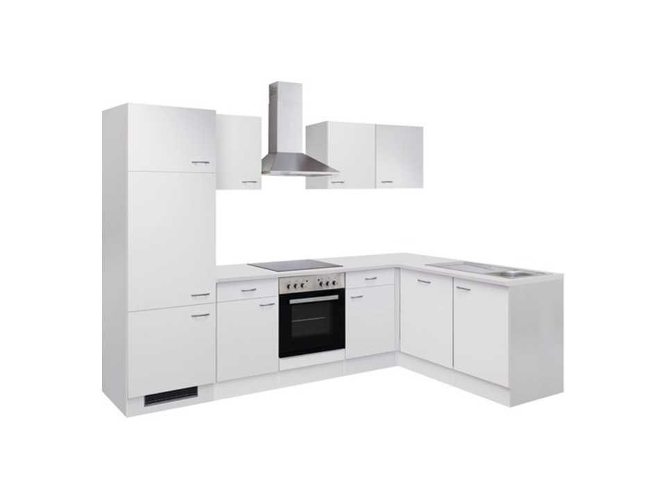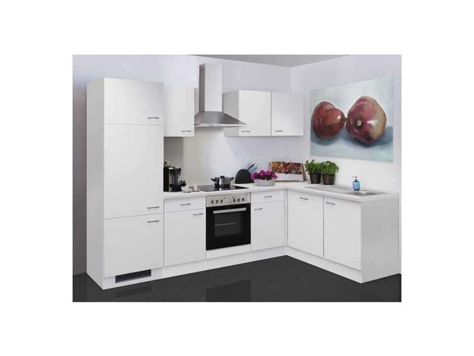 Type artikel: Keuken met apparaten - Uitvoering: Hoekkeuken - Variant: Spiegelbaar (links en rechts te monteren) - Montagewijze: Gedemonteerd - Breedte: 280 cm - Diepte: 170 cm - Werkhoogte: 85 cm - Oppervlak front: Mat - Materiaal front: Spaanplaat - Uitvoering fronten: Melamine - Kleur greep: RVS-look - Vorm handgreep: Beugelgreep - Korpuskleur: Wit - Oppervlakte corpus: Mat - Materiaal Korpus: Spaanplaat - Kleur werkblad: Grijs, Fantasie - Dikte werkblad: 28 mm - Inbegrepen keukenkasten: Koelombouwkast voor 88e nis, Onderkast met deur en schuiflade 50 cm, Ombouwkast voor fornuis met vaste panelen, Hoekonderkast met legbord, Vaatwasserpaneel volledig geïntegreerd 60 cm, Onderkast voor spoelbak 50 cm, Hangkast 50 cm, Hangkast 60 cm - Lade-uitvoering: Met kogellagers en een spaanplaatrand - Electro apparatuur inbegrepen: Koelkast, Inbouw-fornuis-set, Vaatwasmachine, Afzuigkap - Model: Kevin Lengte: 280cm Breedte: 170cm Werkblad hoogte: 85cm Kleur: Wit Leveringsvoorwaarden: Niet gefundeerd - onverpakt