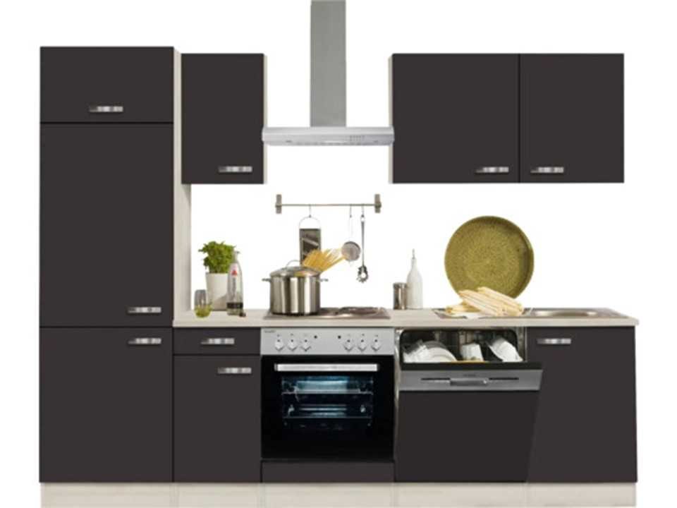 Inbegrepen keukenkasten: Ombouwkast voor oven/koelkast 88 cm, Onderkast met deur en schuiflade 40 cm, Ombouwkast voor fornuis met vaste panelen, Vaatwasserpaneel gedeeltelijk geïntegreerd 60 cm, Onderkast voor spoelbak 50 cm, Hangkast 40 cm, Hangkast 60 cm, Hangkast 50 cm Keukenapparatuur: Inbouw-fornuis-set, Glas keramische kookplaat, Afzuigkap, Koelkast, Vaatwasmachine Merk: Herald Lengte: 270cm Breedte: 60cm Werkblad hoogte: 84cm Hoofdkleur: Antraciet