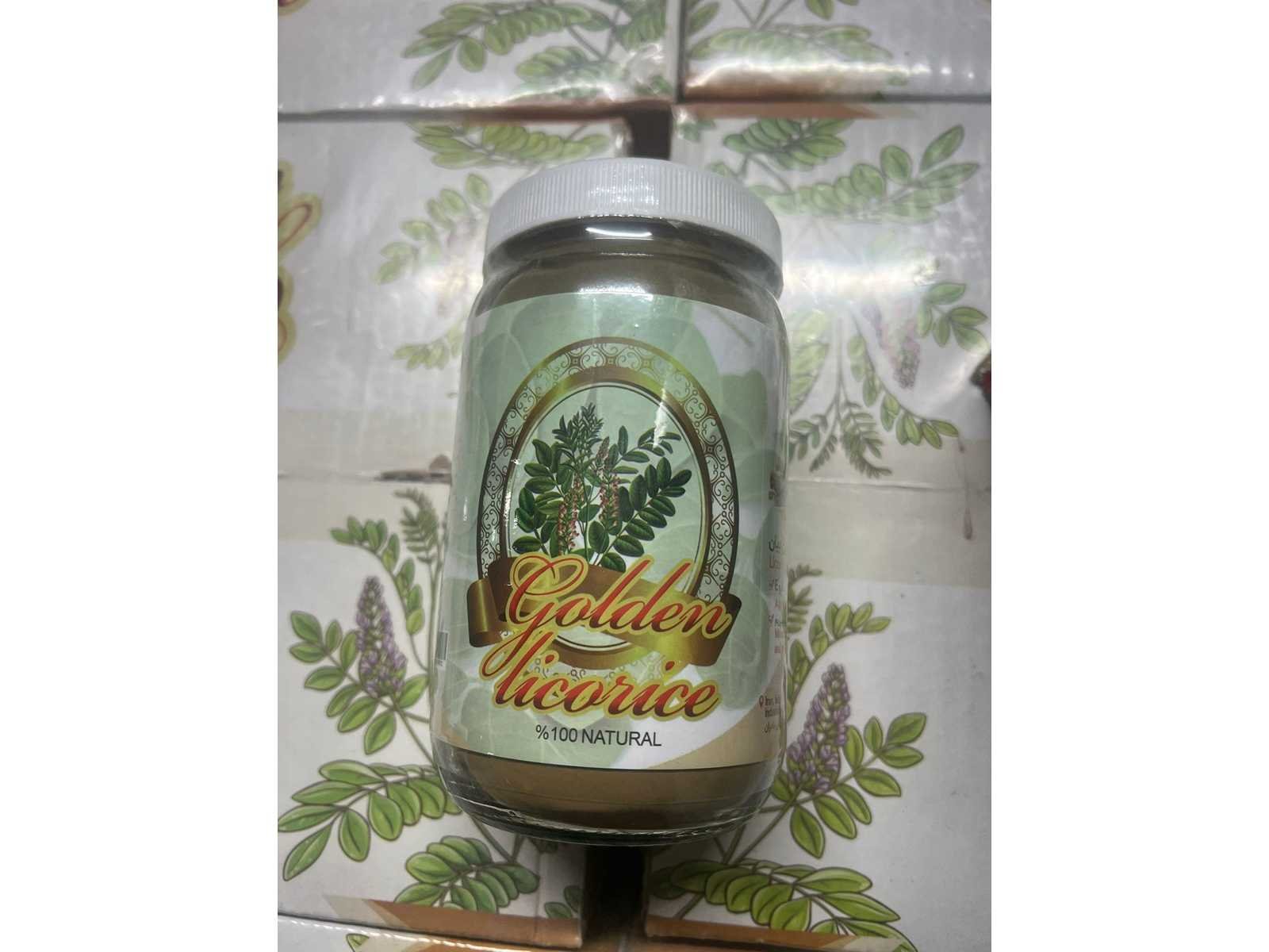 Golden Licorice is een premium kwaliteit 100% natuurlijke zoethoutpoeder, zorgvuldig vervaardigd in Iran. Dit product wordt geproduceerd met pure ingrediënten, zonder toevoegingen of conserveermiddelen, en is een uitstekende keuze voor iedereen die wil profiteren van de veelzijdige gezondheidsvoordelen van zoethout. Het zachte poeder is ideaal voor culinaire, cosmetische en medicinale toepassingen. Per 24 potten in omdoos. Voedingswaarde per 100 g: • Calorieën: 355.36 kcal • Natrium: 98 mg • Koolhydraten: 79 g • Vezels: 0.5 g • Vet: 0.4 g • Eiwit: 7.9 g Merk: Golden Licorice Gewicht: 250g
