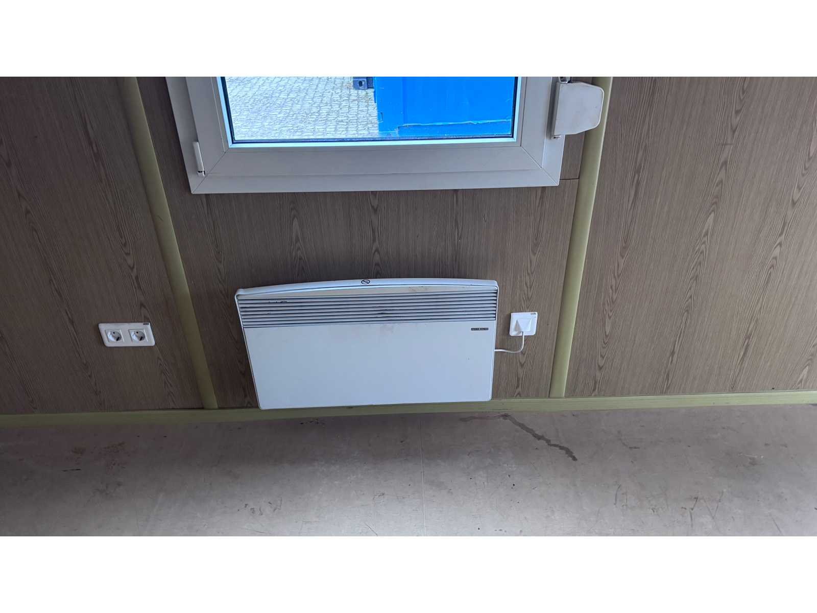 Voorzien van stopcontacten, verlichting, elektrische verwarming, draai-/kiepramen met rolluiken, groepenkast, hijsogen, lepelgaten Merk: CTX Containex