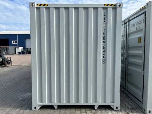 Zeecontainer, voorzien van 4 separaat te openen zijdeuren en einddeur; slotkast; maximaal laadvermogen 24 ton; ongebruikt. Type: 40 ft High Cube Lengte (ft): 40 High cube: true Eigen gewicht: 4260kg Totale afmeting L: 12192mm Totale afmeting Breedte: 2438mm Totale afmeting Hoogte: 2896mm