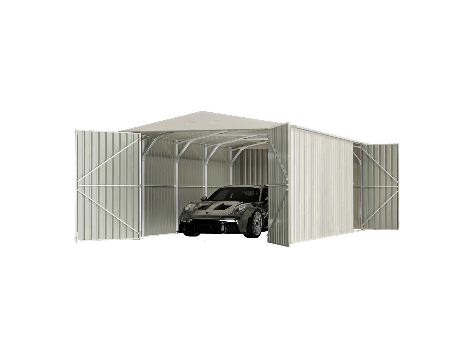 Voorzien van dubbele draaideur aan de voorkant en een draaideur aan de zijkant Afmeting dubbele draaideur aan de voorzijde: 255x195cm Afmeting deur aan de zijkant: 86x195 cm Binnenmaat 337x585x233 cm Wandhoogte: 200 cm Kleur metalen plaatwerk buitenzijde: RAL 9001 Merk: Field Industries Materiaal: Metaal Type: 1119 Bouwjaar: 2025 Totaal oppervlakte: 21m² Totale afmeting L: 5890mm Totale afmeting Breedte: 3550mm Totale afmeting Hoogte: 2330mm Eigen gewicht: 350kg