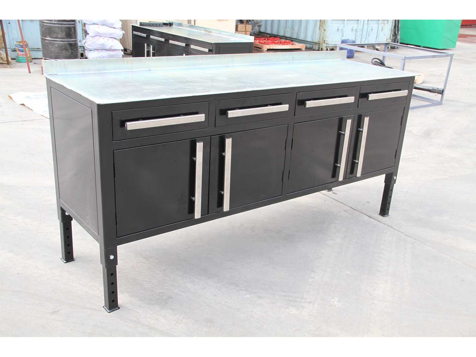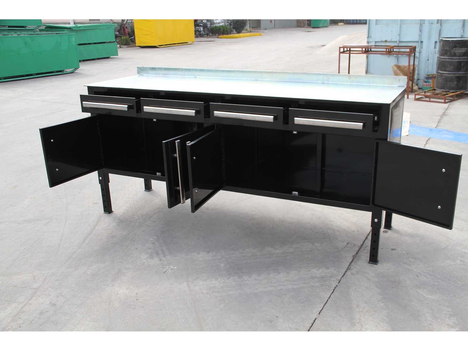 Voorzien van laden en kastruimte. Ladefront: B48 × H12,5 cm Kastfront: B50 × H41 cm Pootlengte: 35 cm Gaten in Poot: Ø13 mm Hart-op-hart afstand gaten: 5 cm Kleur: Zwart (RAL9011)