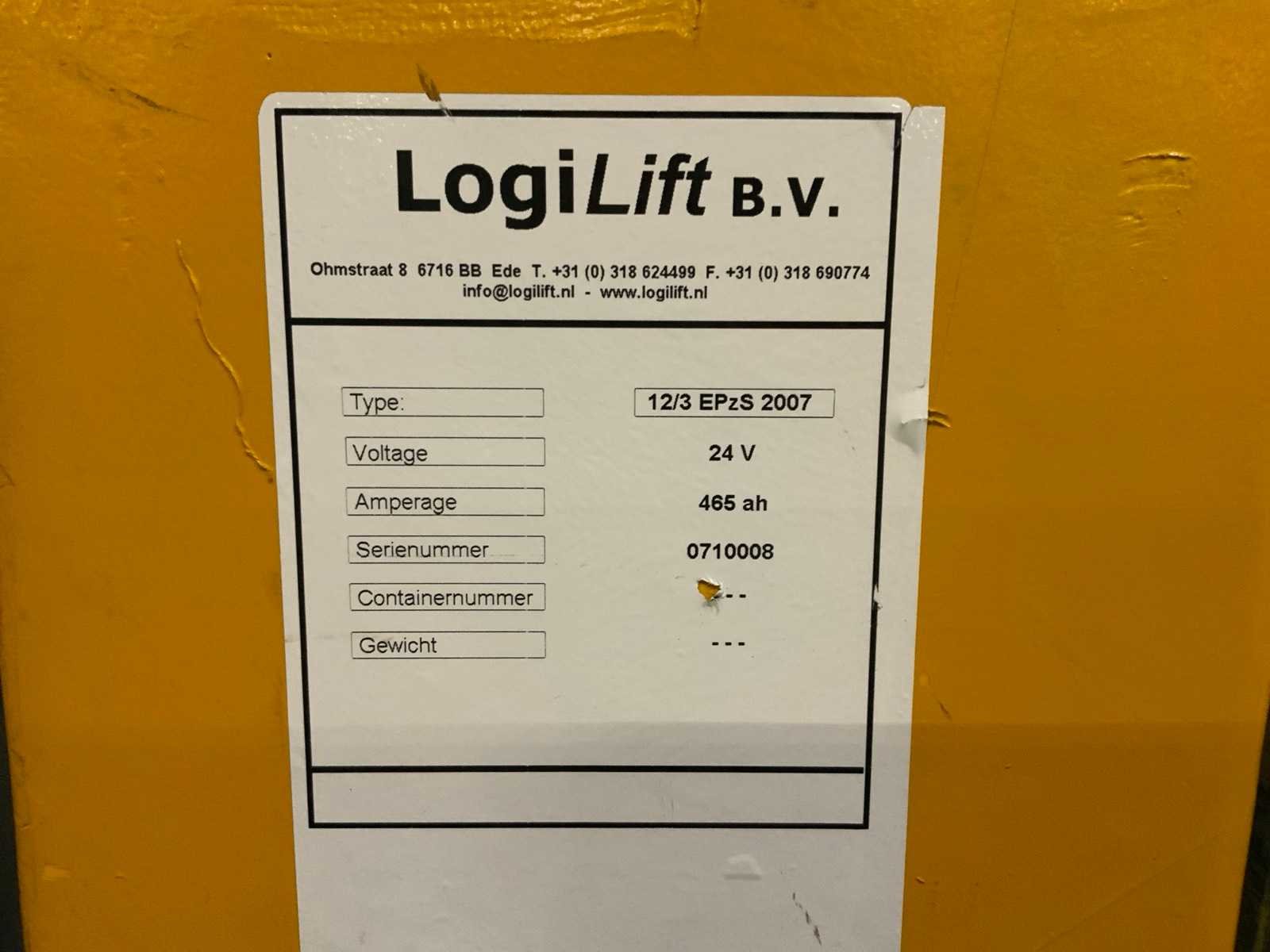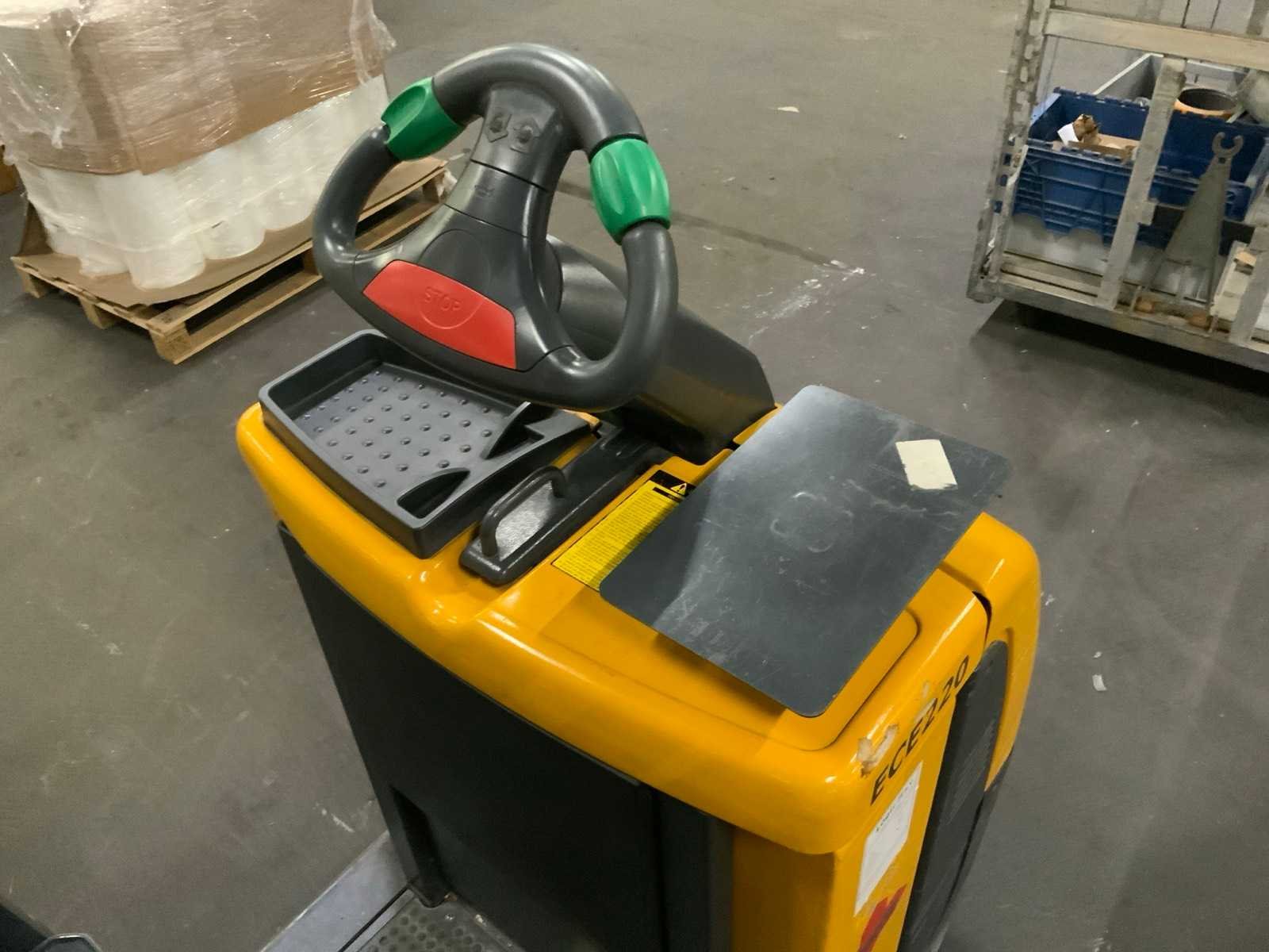 Accu gewicht min. 351 / max. 422 kg, met sleutel. Merk: Jungheinrich Type: ECE 220 Bouwjaar: 2007 Serienummer: 90266953 Hefvermogen: 2000kg Lepellengte: 1000mm Afgelezen urenstand: 14473 Eigen gewicht: 735kg Totale afmeting L: 2400mm Totale afmeting Breedte: 820mm Totale afmeting Hoogte: 1400mm