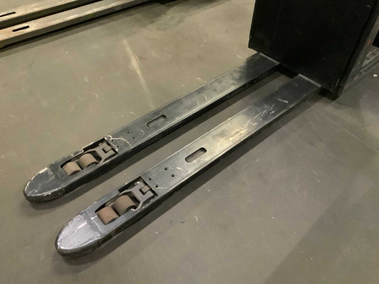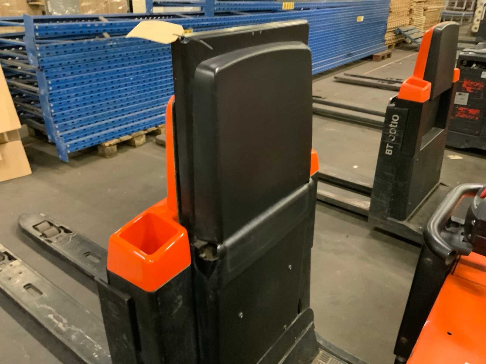 Accu gewicht max. 391 / min. 239 kg Merk: BT Type: OSE250 Bouwjaar: 2012 Serienummer: 6218584 Hefvermogen: 2500kg Lepellengte: 2340mm Eigen gewicht: 1005kg Totale afmeting L: 3750mm Totale afmeting Breedte: 800mm Totale afmeting Hoogte: 1900mm
