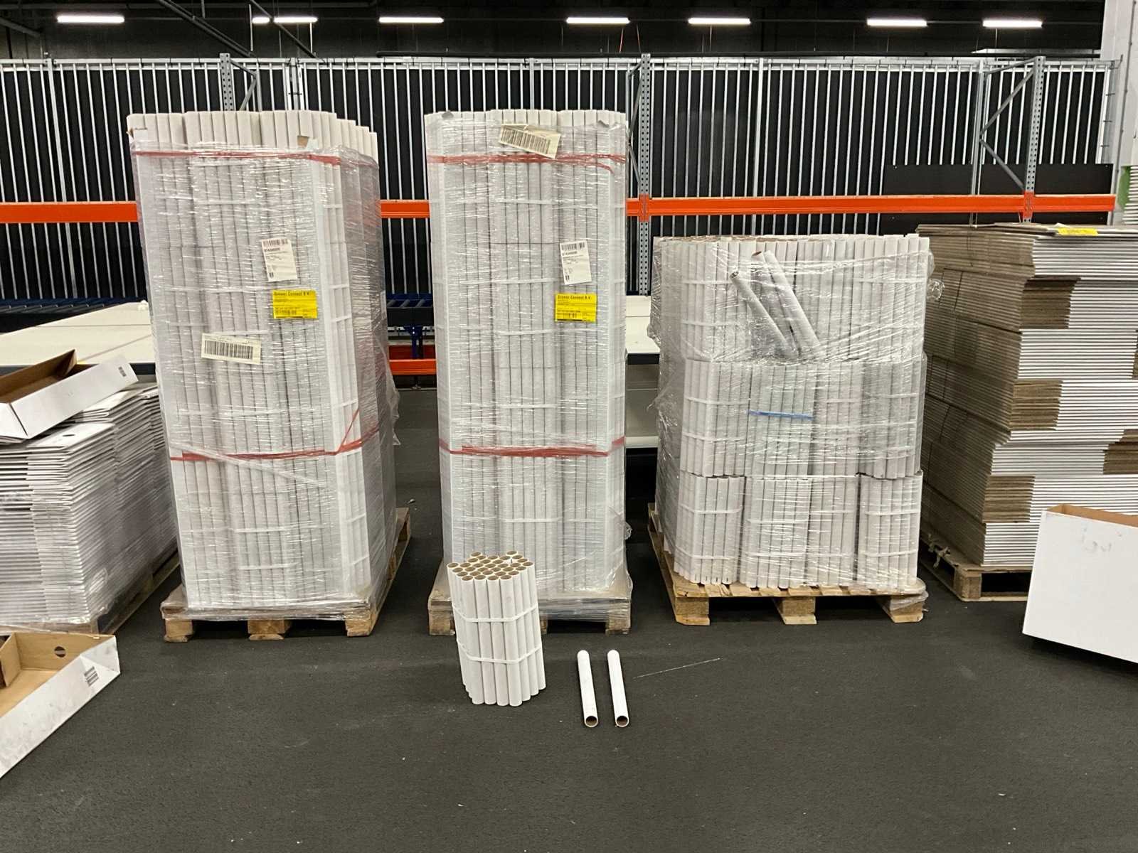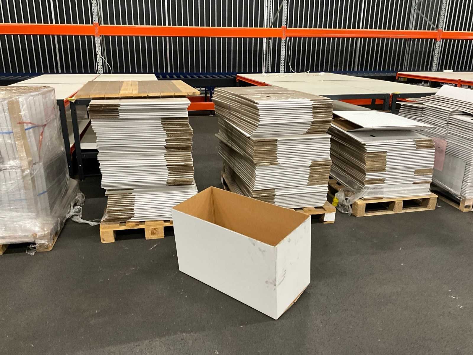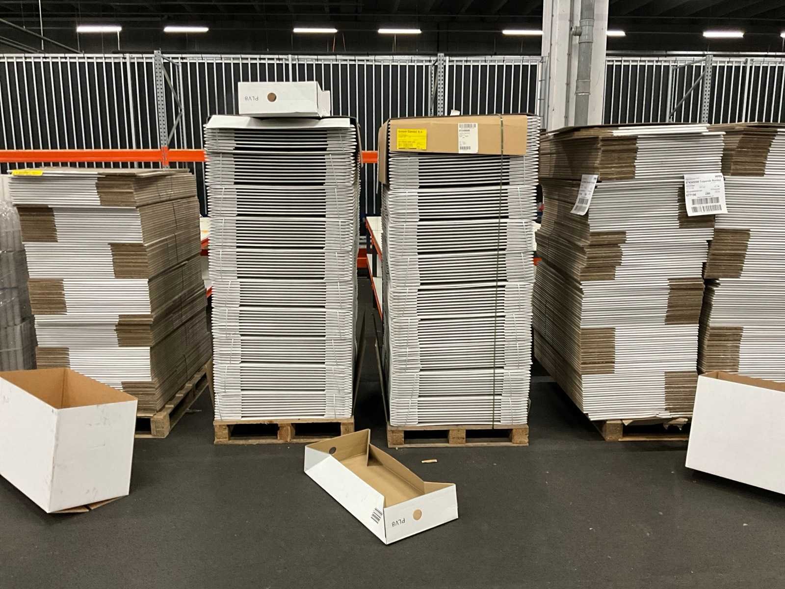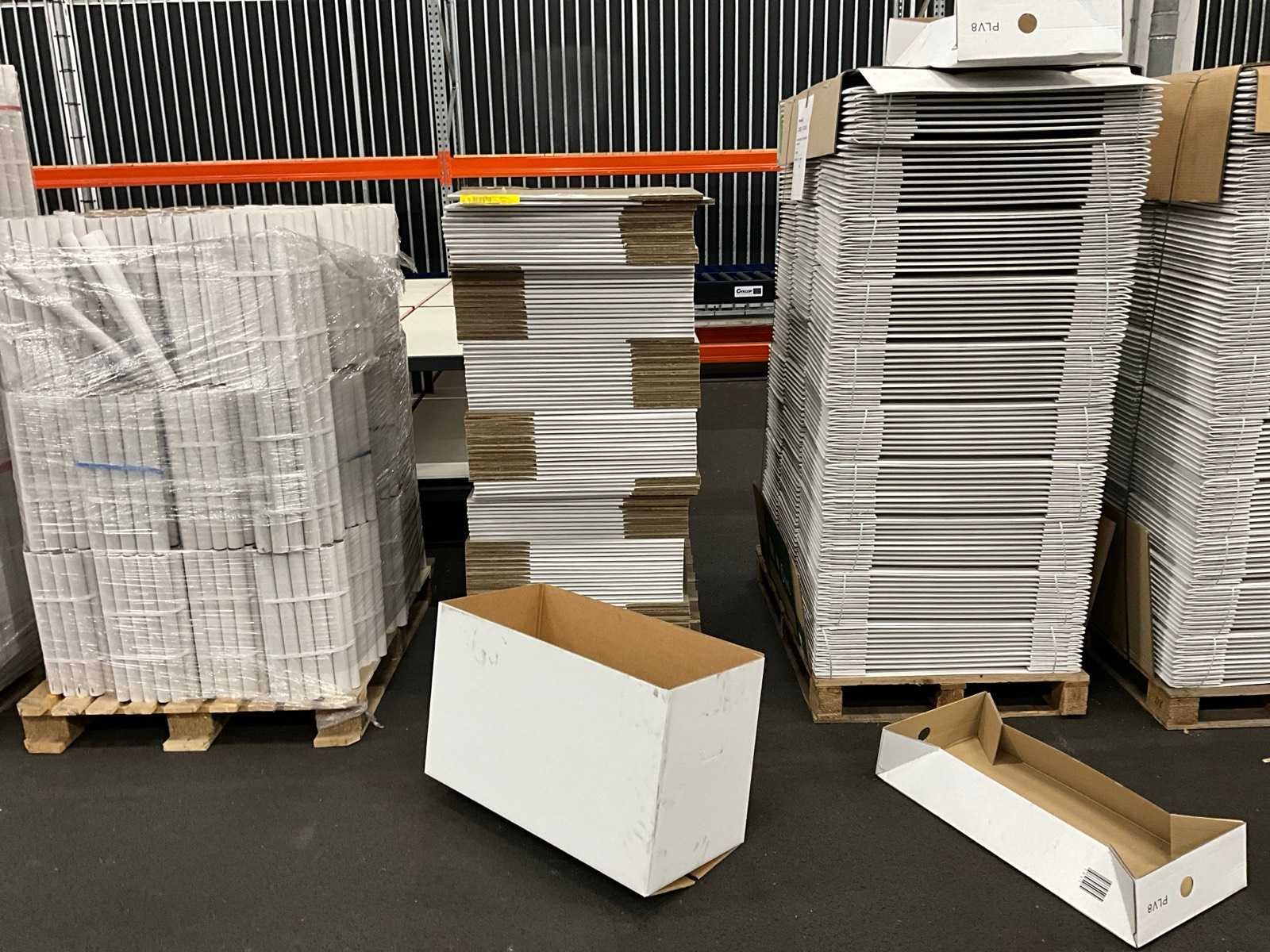 Bestaande uit: Amer. Vouwdoos tulpendoos 765x370x458 mm (6x); kartonnen koker 38x455 mm (4x); vouwdoos deksel PLV 8 800x400x150 mm (4x); totaal 14 pallets; aantallen kunnen afwijken; Merk: Diverse