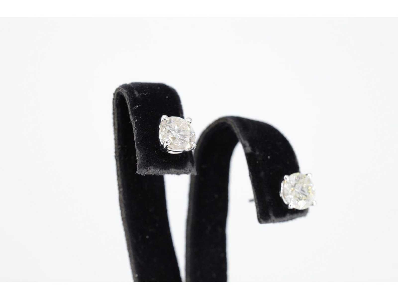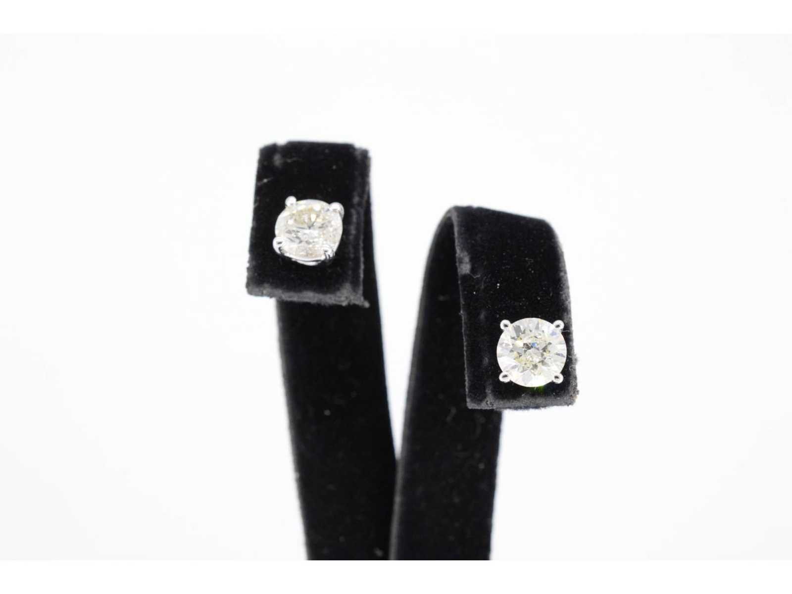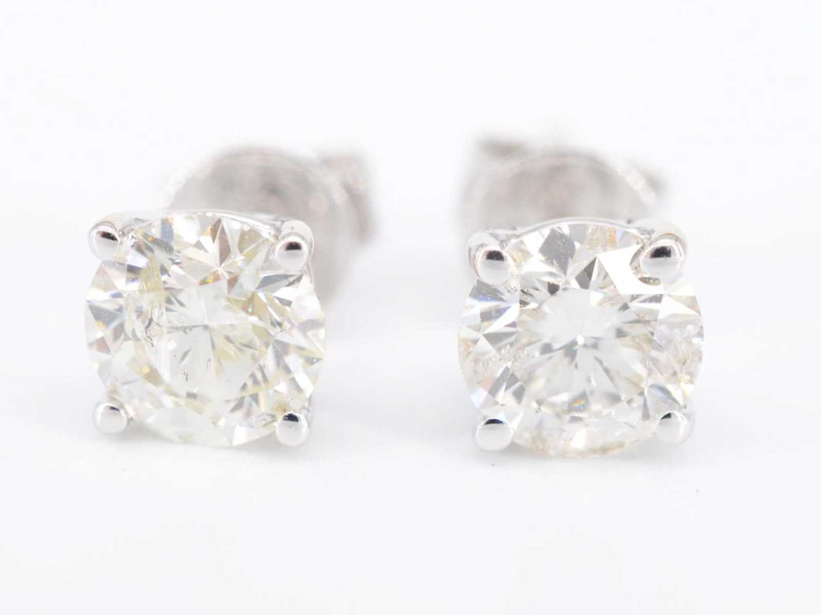 Samenvatting van gegevens Witgouden oorbellen met twee solitaire diamanten van 1.00 carat totaal Diamant: Natuurlijk; Aantal: 2 stuks; Slijpvorm: Briljant geslepen; Gewicht (carat): 1.00 carat; Kleur: F; Zuiverheid: SI3; Slijpkwaliteit: Zeer mooi; Juweel: Oorbellen; Gewicht: 1.7 gram; Materiaal: 18K goud (750); Conditie: Nieuw; Verpakking: Luxe sieradendoos; Toelichting: De kwaliteit is overgenomen van het rapport behorend bij item. De waardebepaling is een beoordeling van een gecertificeerde diamantair, gebaseerd op consumentenprijzen.; Consumentenprijs: € 12.000,- Within 14 days Materiaal: Goud Voornaamste diamant: Natuurlijk Kleur diamant: F Gewicht diamant: 1.00ct Slijpvorm diamant: Briljant geslepen Slijpkwaliteit diamant: Zeer mooi Zuiverheidsgraad diamant: SI3 Totaal gewicht: 1.7g Keurmerk: 750