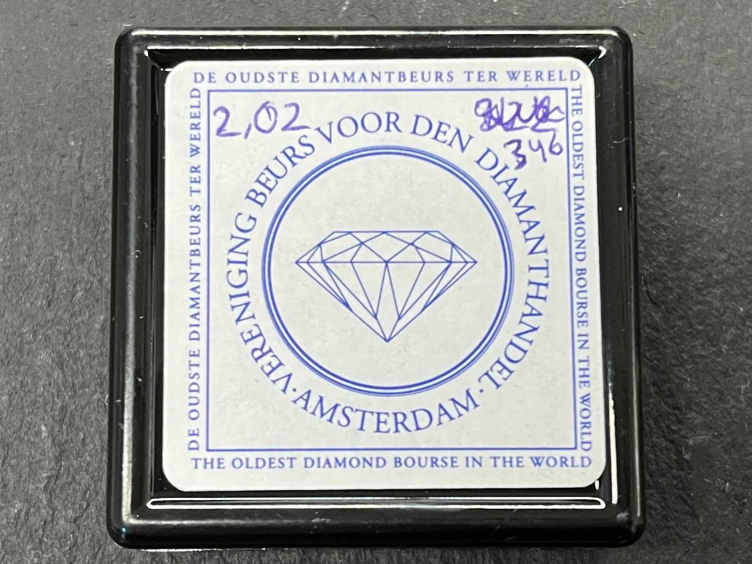 Samenvatting van gegevens Diamant - 2.02 carat echte natuurlijke briljant geslepen diamant Diamant: Natuurlijk; Slijpvorm: Briljant geslepen; Gewicht (carat): 2.02 carat; Kleur: Warm getint; Zuiverheid: VVS-VS; Slijpkwaliteit: Very good; Conditie: Nieuw; Verpakking: Edelsteendoos; Toelichting: De kwaliteit is overgenomen van het rapport behorend bij item. De waardebepaling is een beoordeling van een gecertificeerde diamantair, gebaseerd op consumentenprijzen.; Consumentenprijs: € 4.875,- Within 14 days Voornaamste diamant: Natuurlijk Kleur diamant: Warm getint Gewicht diamant: 2.02ct Slijpvorm diamant: Briljant geslepen Slijpkwaliteit diamant: Very good Zuiverheidsgraad diamant: VVS-VS