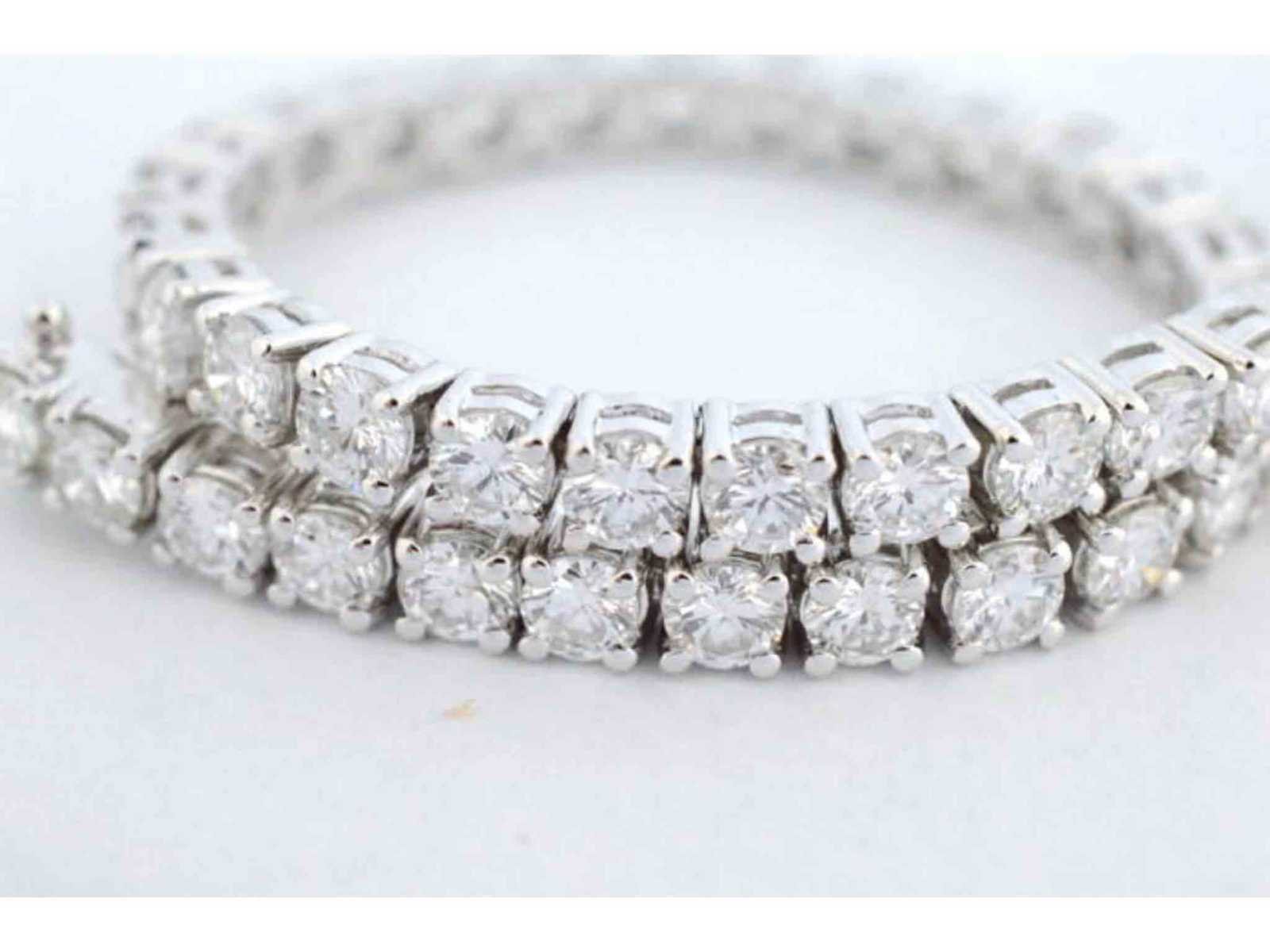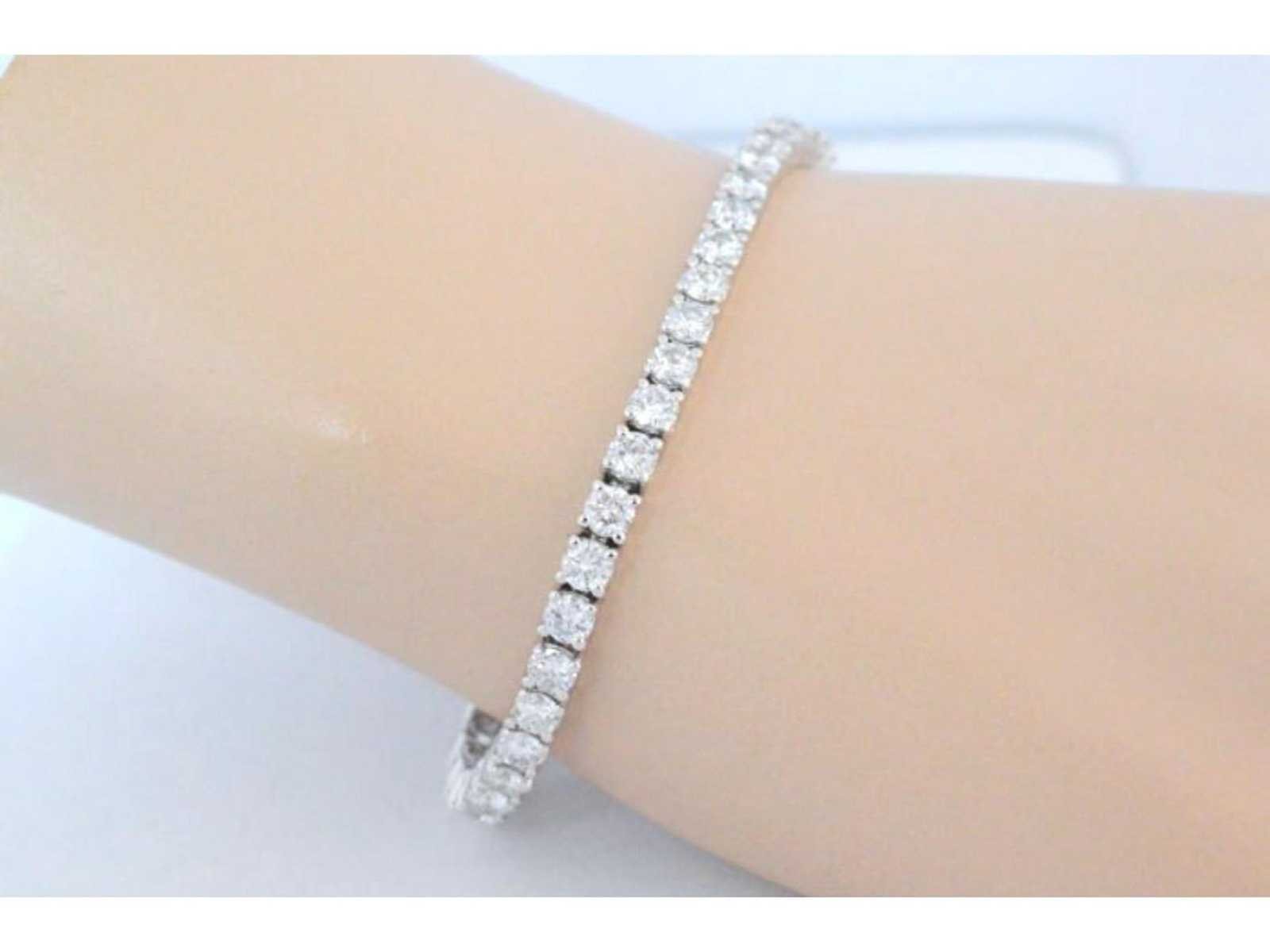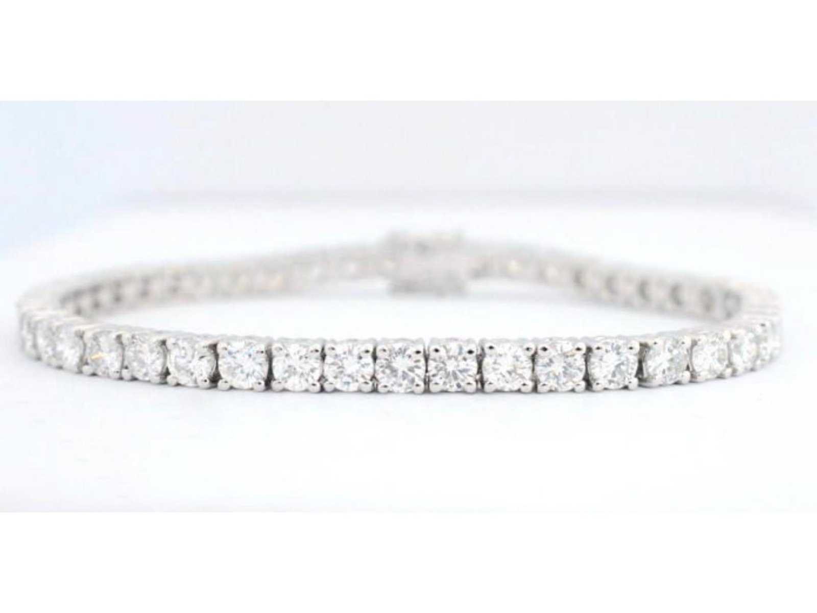 Samenvatting van gegevens Witgouden tennisarmband met 7.50 carat briljant geslepen diamanten Diamant: Natuurlijk; Slijpvorm: Briljant geslepen; Gewicht (carat): 7.50 carat; Kleur: E-F; Zuiverheid: VS; Slijpkwaliteit: Zeer mooi; Juweel: Armband; Gewicht: 12 gram; Afmetingen/lengte: 17.5 cm; Materiaal: 18K goud (750); Conditie: Nieuw; Verpakking: Luxe sieradendoos; Toelichting: De kwaliteit is overgenomen van het rapport behorend bij item. De waardebepaling is een beoordeling van een gecertificeerde diamantair, gebaseerd op consumentenprijzen.; Consumentenprijs: € 38.290,- Within 14 days Materiaal: Goud Voornaamste diamant: Natuurlijk Kleur diamant: E-F Gewicht diamant: 7.50ct Slijpvorm diamant: Briljant geslepen Slijpkwaliteit diamant: Zeer mooi Zuiverheidsgraad diamant: VS Totaal gewicht: 12g Keurmerk: 750