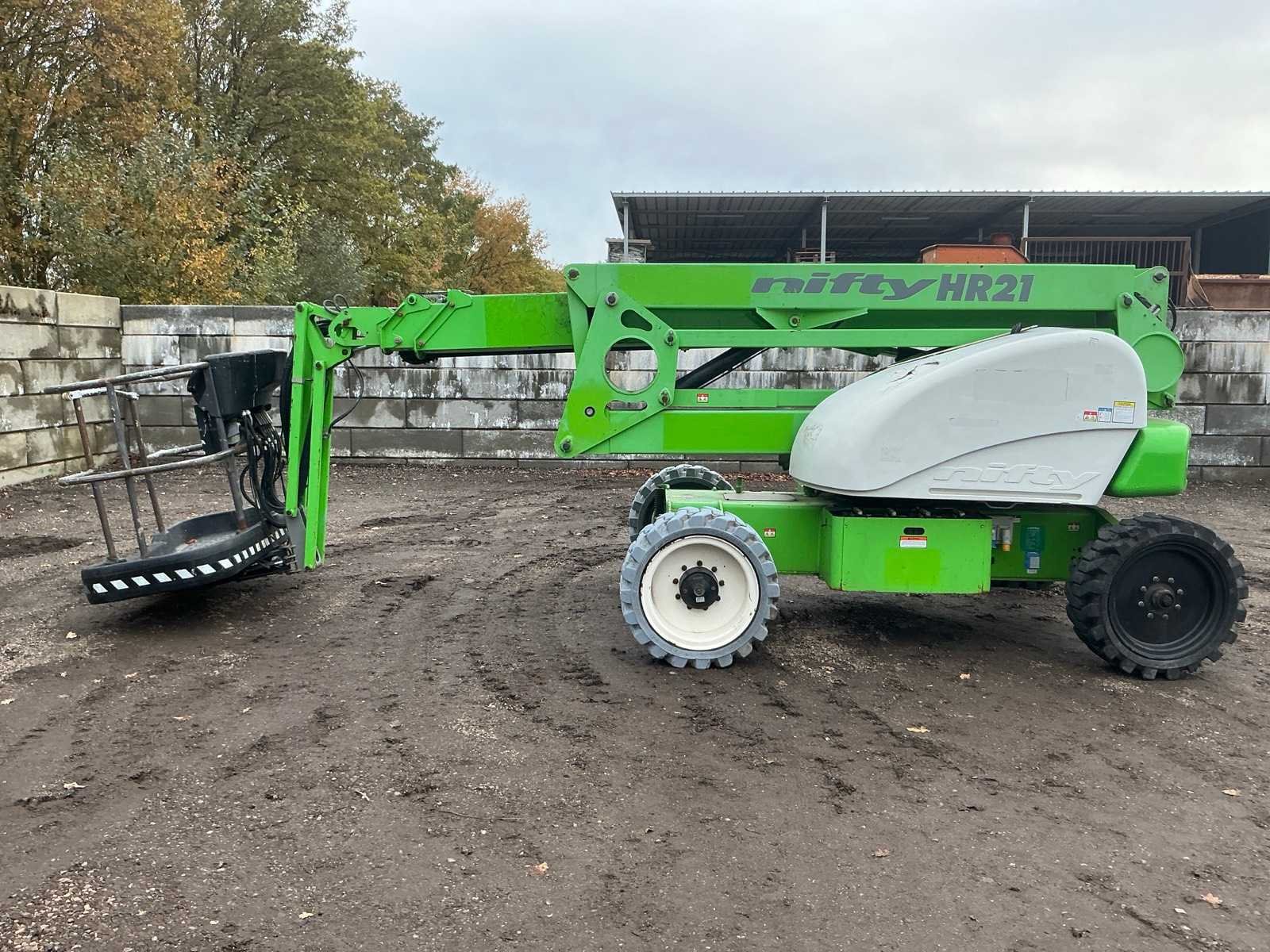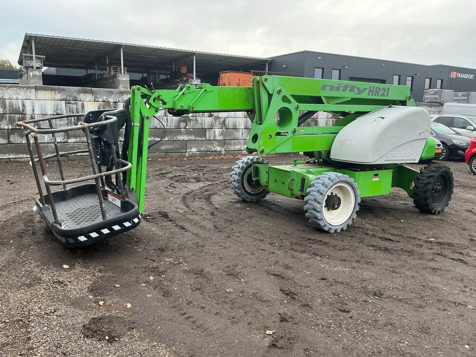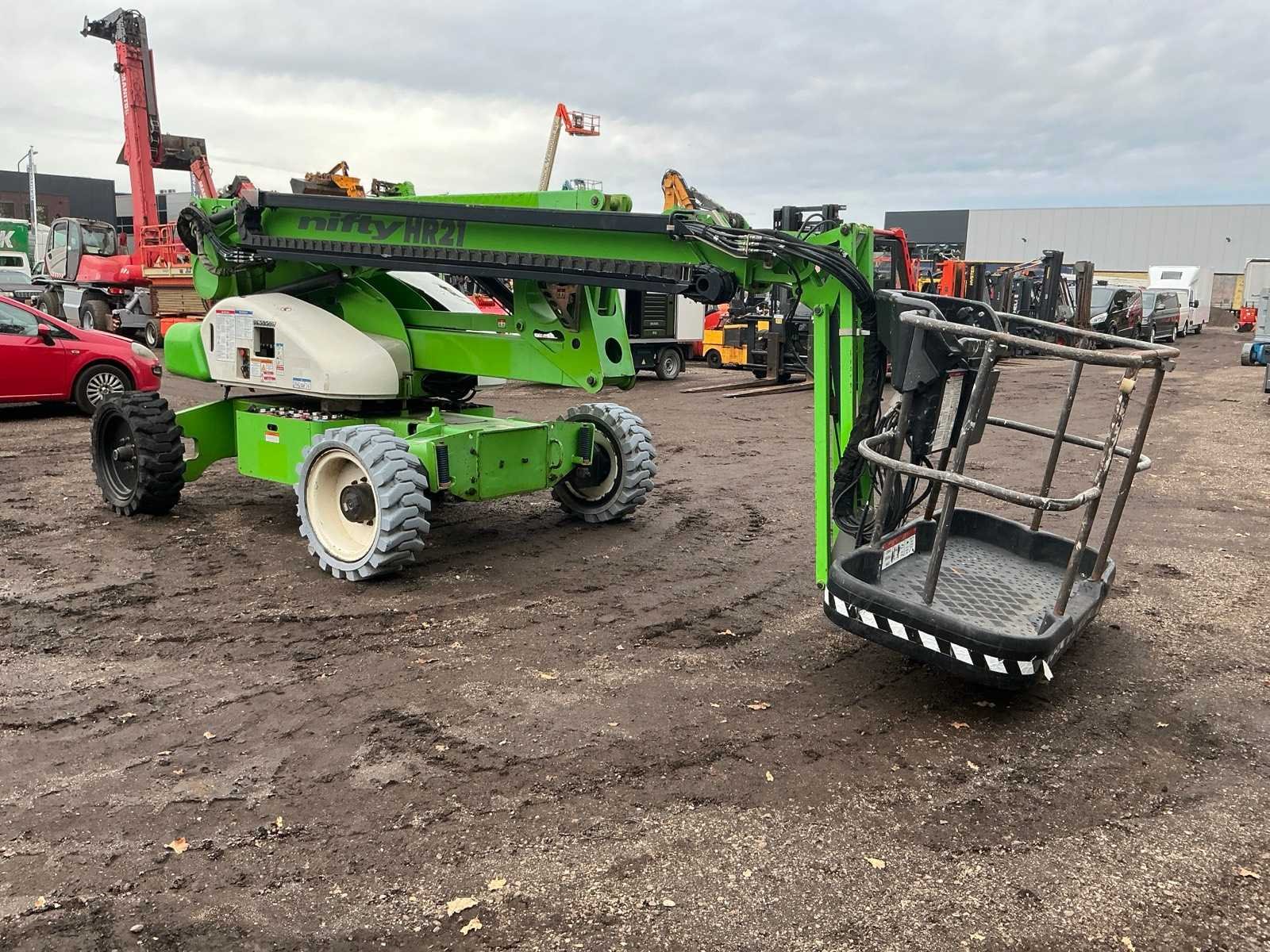 Let op; rijdt niet, zwenkt niet, alle hef functie doen het wel, as stabilisatie, roterende opbouw, roterende werkbak, 3 delige telescoop mast, max hefhoogte 20800mm, max hefvermogen 225kg Merk: Nifty Type: HR 21 hybride Bouwjaar: 2010 Serienummer: 21 19971 Elektrisch: true Knikarm hoogwerker: true Werkhoogte: 20800mm Horizontale rijkwijdte: 13000mm Plateau afm. l: 850mm Plateau afm. b: 1760mm Platform capaciteit: 225kg Accu lader: true Eigen gewicht: 6300kg Totale afmeting L: 6350mm Totale afmeting Breedte: 2270mm Totale afmeting Hoogte: 2200mm