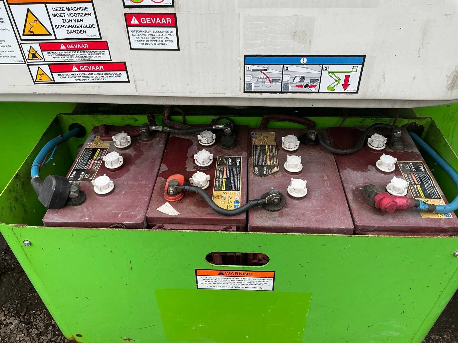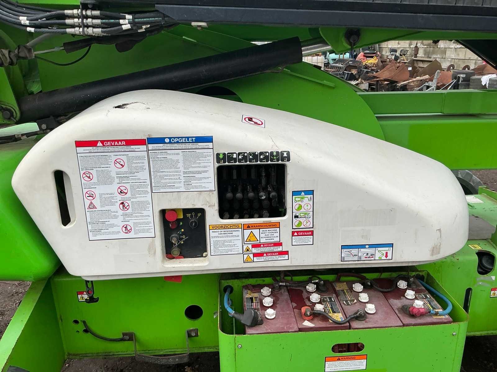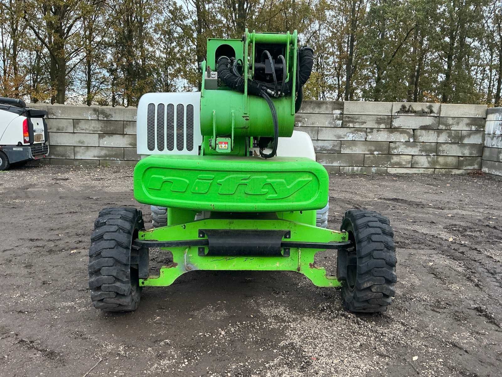 Let op; rijdt niet, zwenkt niet, alle hef functie doen het wel, as stabilisatie, roterende opbouw, roterende werkbak, 3 delige telescoop mast, max hefhoogte 20800mm, max hefvermogen 225kg Merk: Nifty Type: HR 21 hybride Bouwjaar: 2010 Serienummer: 21 19971 Elektrisch: true Knikarm hoogwerker: true Werkhoogte: 20800mm Horizontale rijkwijdte: 13000mm Plateau afm. l: 850mm Plateau afm. b: 1760mm Platform capaciteit: 225kg Accu lader: true Eigen gewicht: 6300kg Totale afmeting L: 6350mm Totale afmeting Breedte: 2270mm Totale afmeting Hoogte: 2200mm
