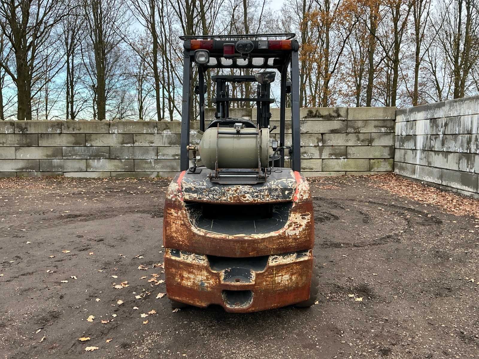 Lepels 1200mm, lepelbord 1200mm, free lift, Side shift, triplex mast, werkverlichting trekoog, max hefhoogte 3000mm, max hefvermogen 3500kg Merk: Toyota Type: 02-8FGJF35 Bouwjaar: 2016 Serienummer: 8FGJF3560976 Brandstof: LPG Mast: Duplex Soort band: Volrubber banden Aantal wielen: 4 Afgelezen urenstand: 10927 Free-lift: true Side-shift: true Hydraulisch verstelbare lepels: true Duplex mast: false Triple mast: true Eigen gewicht: 5080kg Hefvermogen: 3500kg Lepellengte: 1200mm Max. hefhoogte: 3000mm Vol rubber banden: true Minimale doorrijhoogte: 2200mm Totale afmeting L: 4150mm Totale afmeting Breedte: 1270mm Totale afmeting Hoogte: 2200mm LPG: true