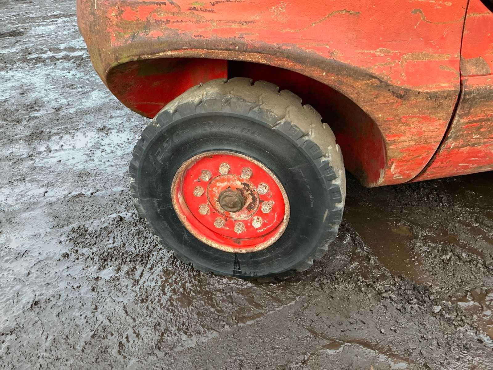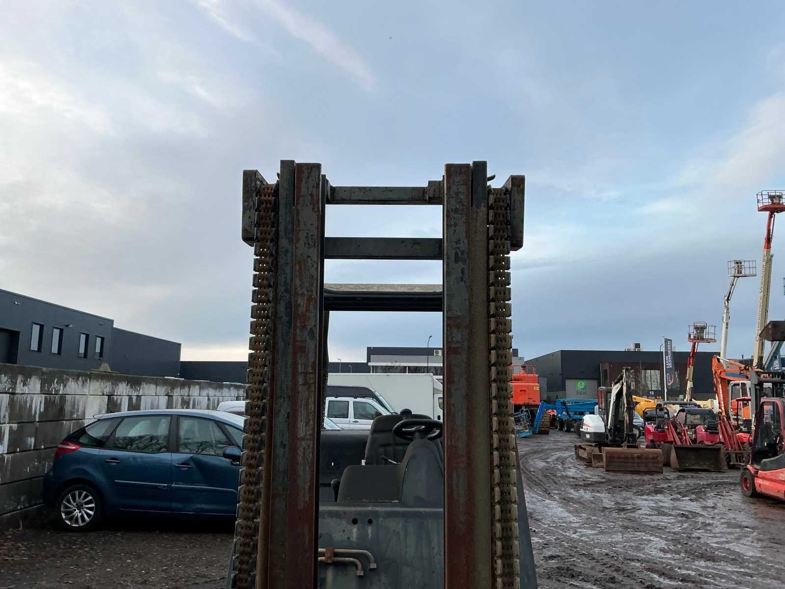 Let op; motor gaat rond maar slaat niet aan, lepels 1000mm, lepelbord 1350mm, trekoog achter, max hefhoogte 4500mm, max hefvermogen 4000kg Merk: Linde Type: H40D Bouwjaar: 1994 Serienummer: 352E11017540 Brandstof: Diesel Mast: Triple Soort band: Volrubber banden Aantal wielen: 4 Afgelezen urenstand: 14648 Eigen gewicht: 6100kg Hefvermogen: 4000kg Max. hefhoogte: 4500mm Vol rubber banden: true Minimale doorrijhoogte: 2700mm Totale afmeting L: 4050mm Totale afmeting Breedte: 1400mm Totale afmeting Hoogte: 2600mm