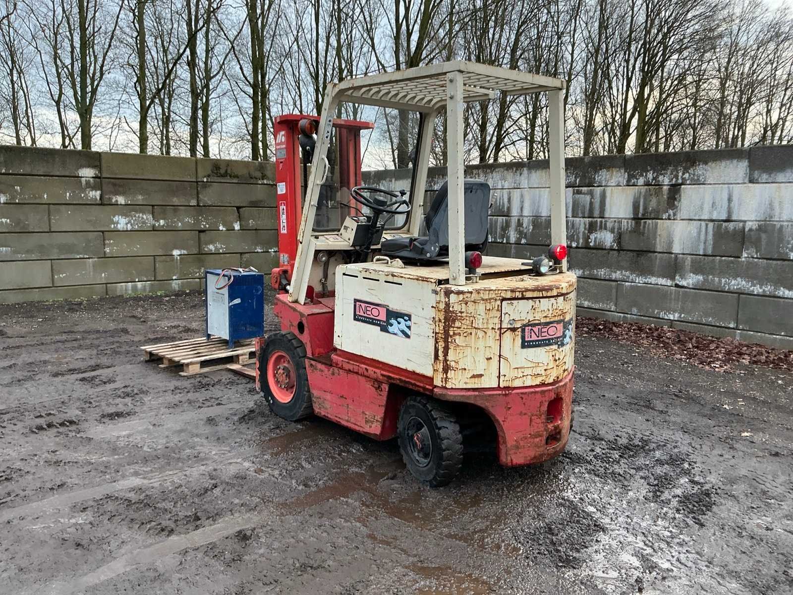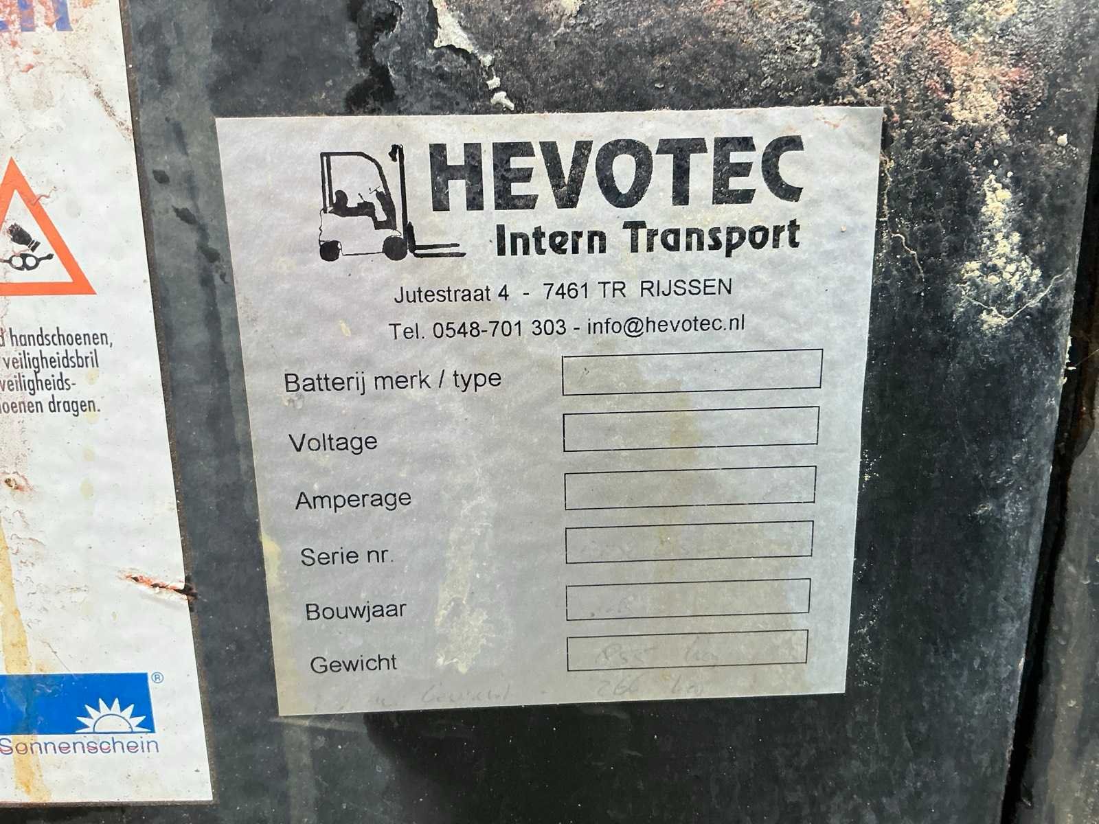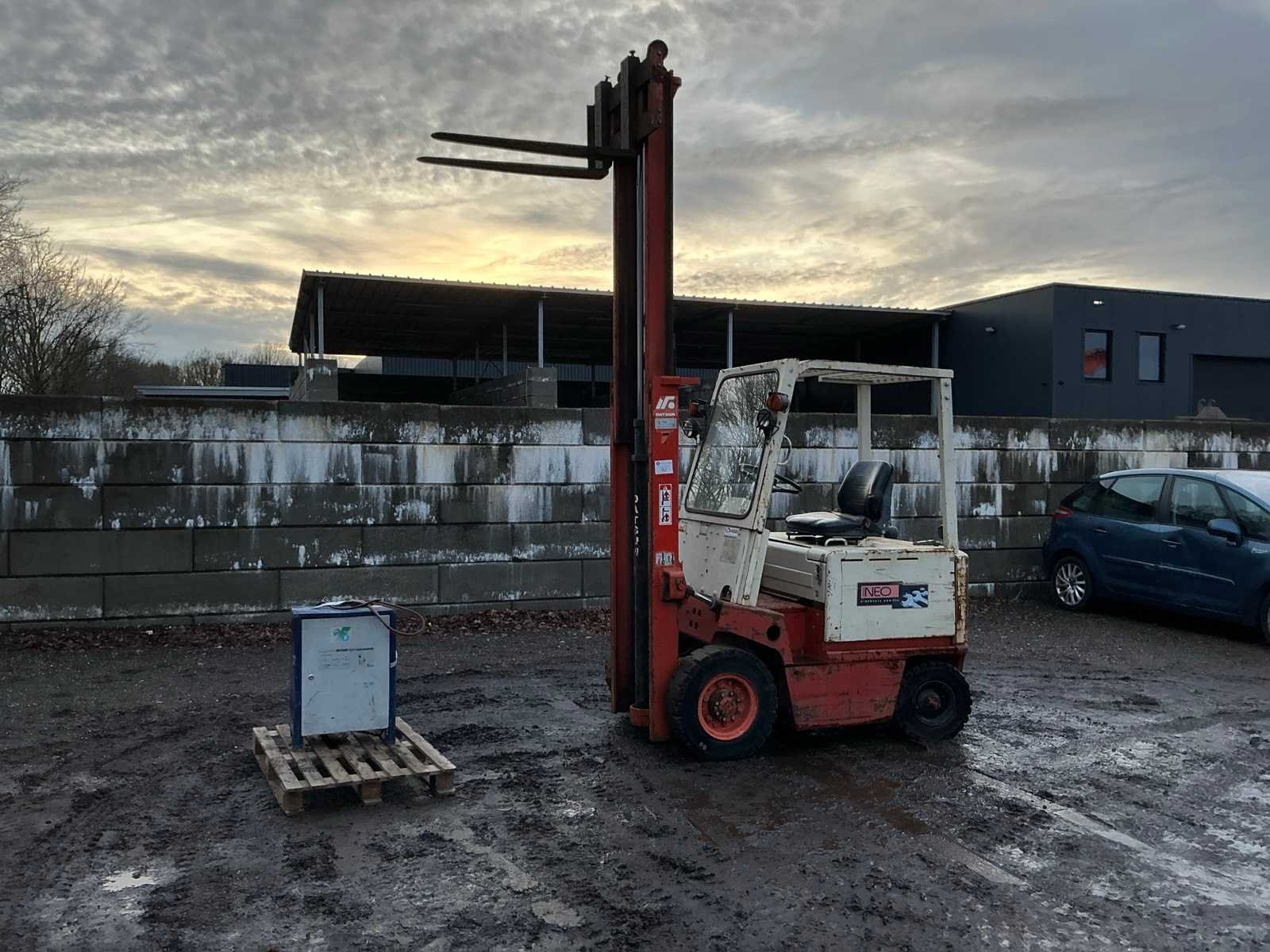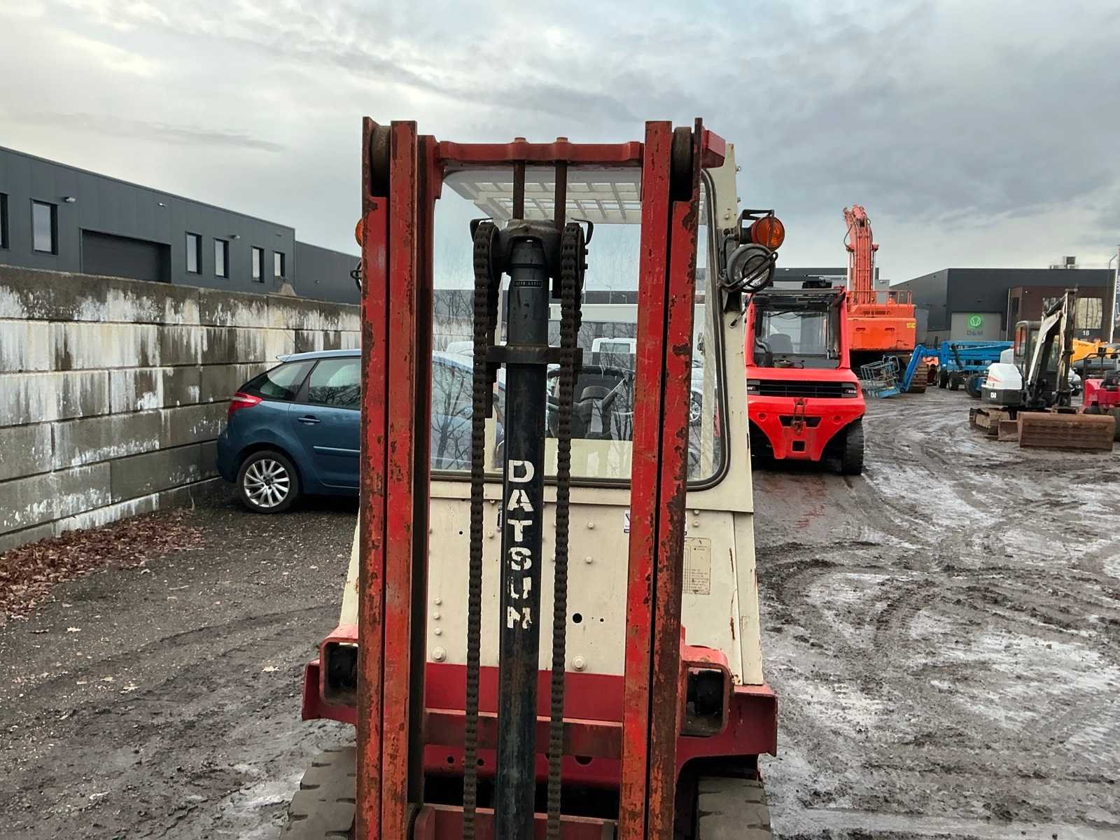 Inclusief lader, Lepels 1070mm, lepelbord 1050mm, werkverlichting, trekoog met pin 25mm, 48V accupakket, max hefhoogte 3300mm, max hefvermogen 2500kg Merk: Datsun Type: UB02 Serienummer: UB02-101195 Brandstof: Elektrisch Mast: Duplex Soort band: Volrubber banden Aantal wielen: 4 Afgelezen urenstand: 1790 Eigen gewicht: 4000kg Hefvermogen: 2500kg Lepellengte: 1070mm Max. hefhoogte: 3300mm Vol rubber banden: true Minimale doorrijhoogte: 2350mm Totale afmeting L: 3400mm Totale afmeting Breedte: 1150mm Totale afmeting Hoogte: 2300mm
