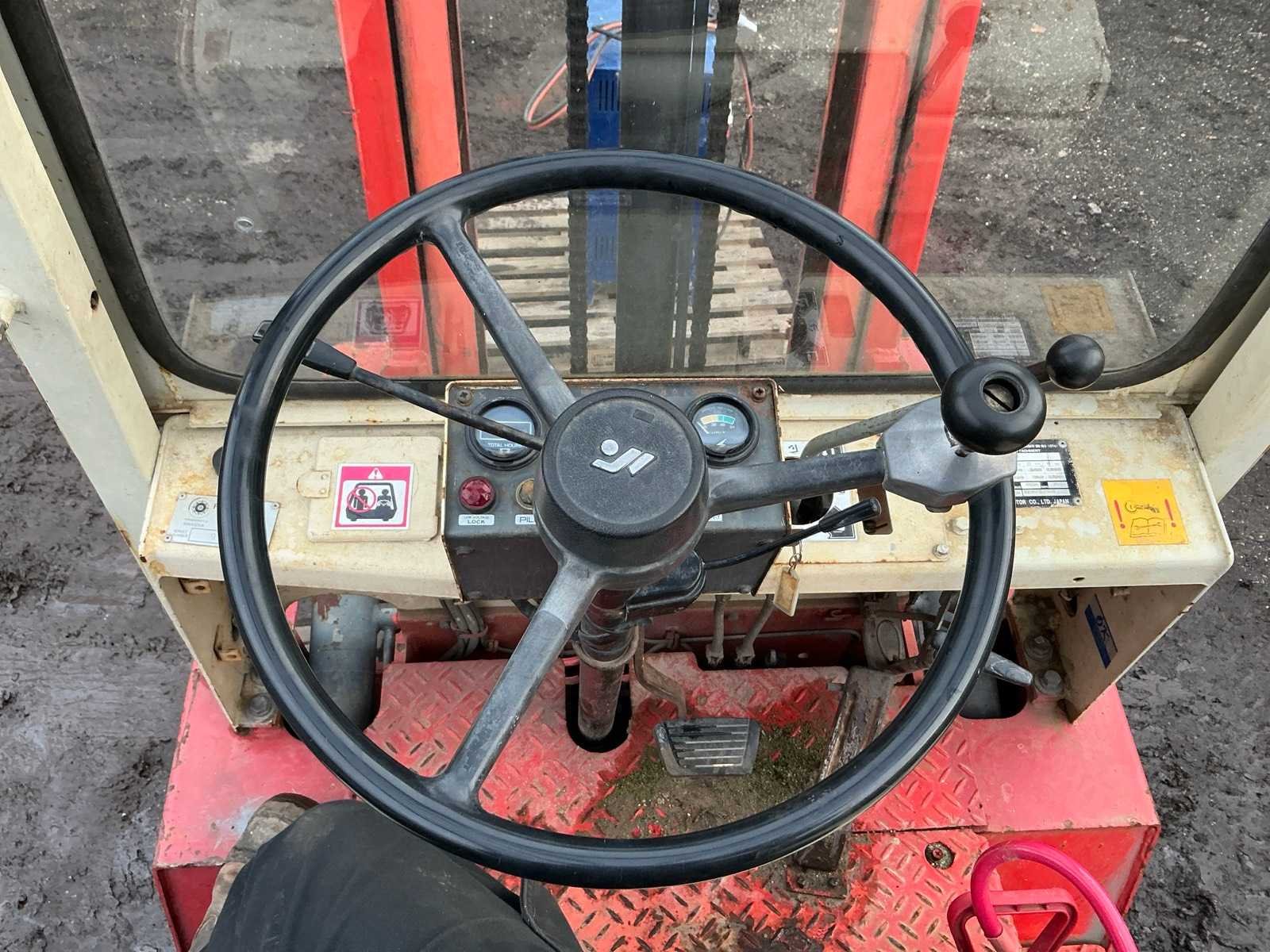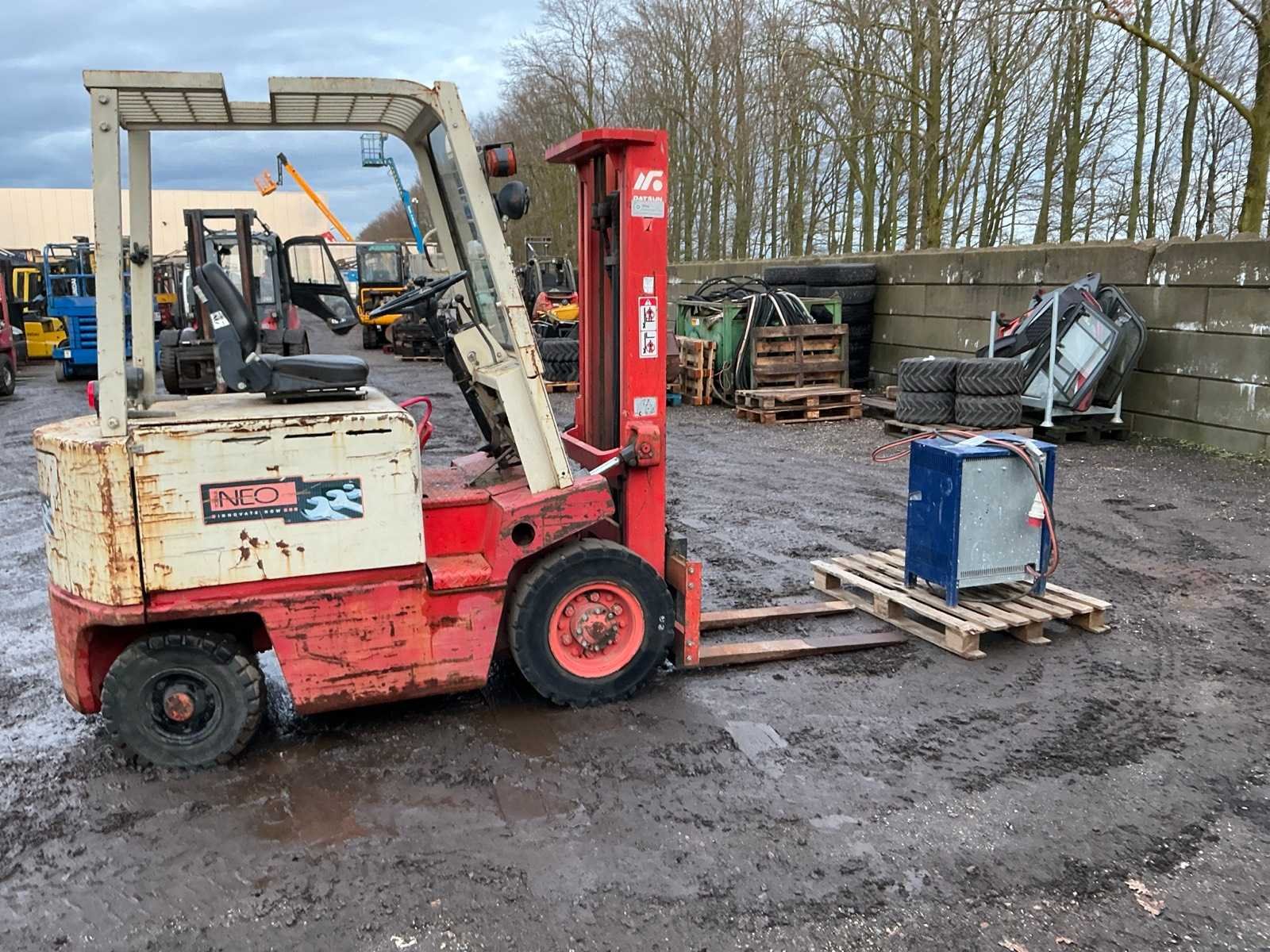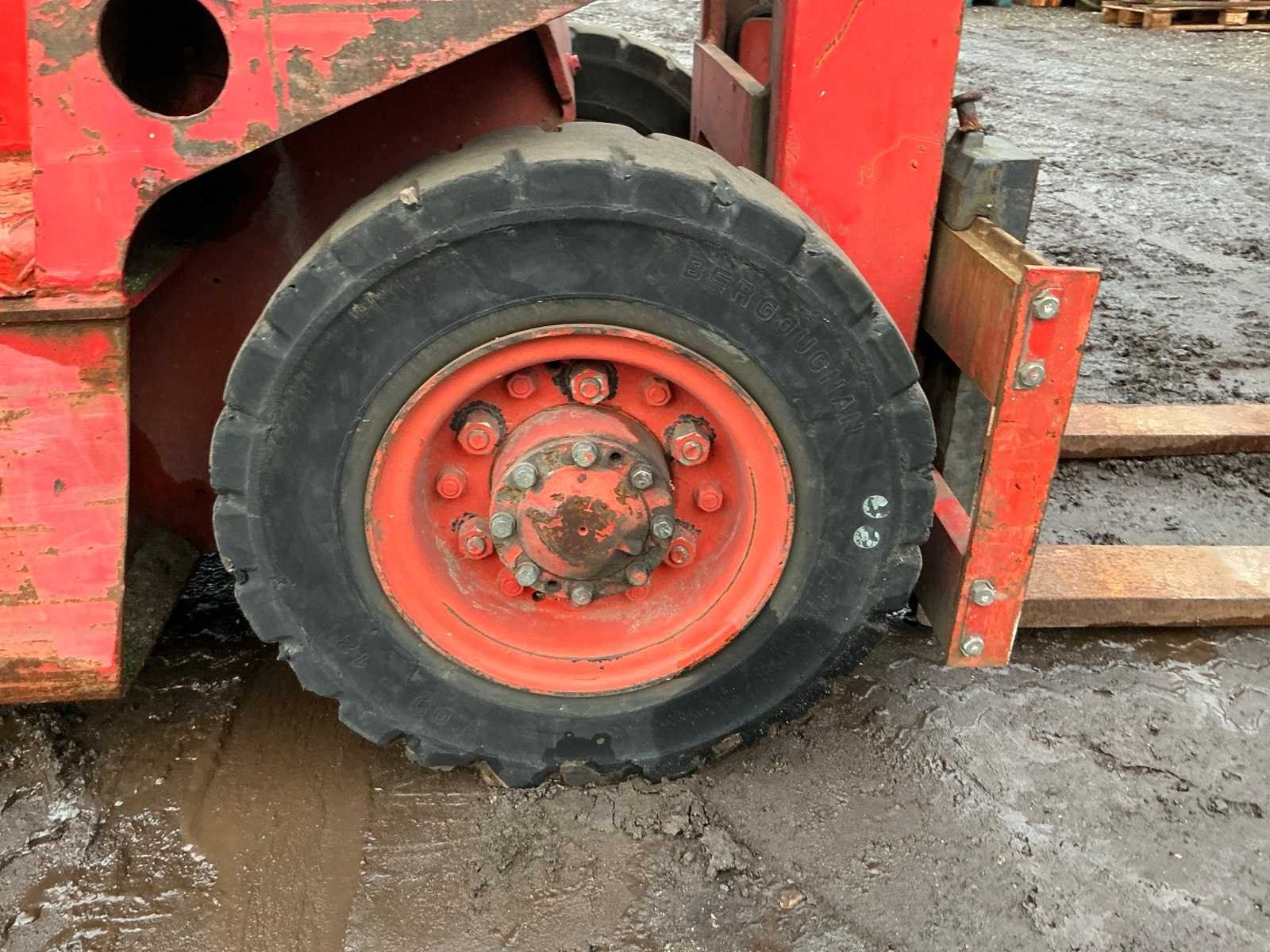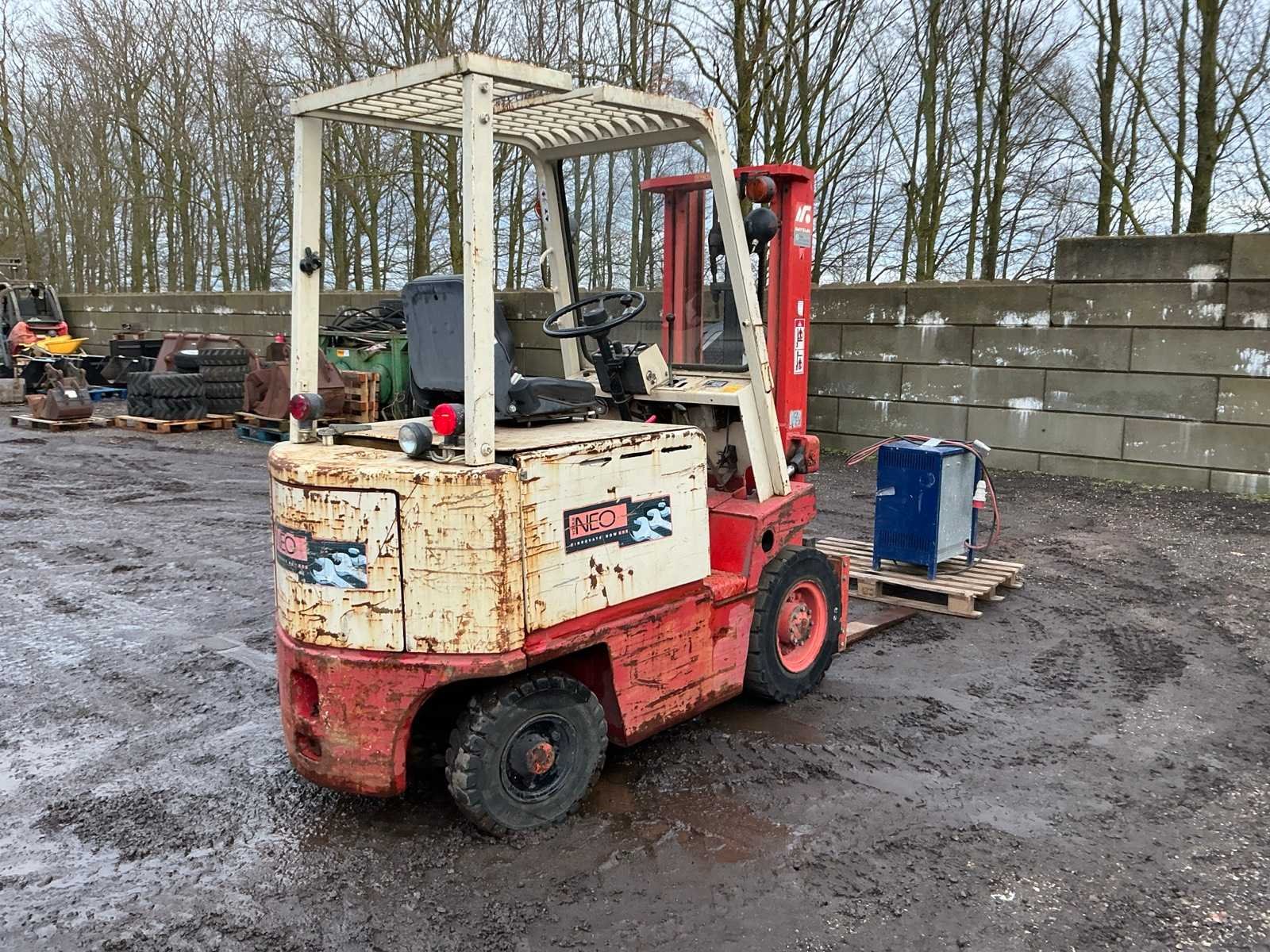 Inclusief lader, Lepels 1070mm, lepelbord 1050mm, werkverlichting, trekoog met pin 25mm, 48V accupakket, max hefhoogte 3300mm, max hefvermogen 2500kg Merk: Datsun Type: UB02 Serienummer: UB02-101195 Brandstof: Elektrisch Mast: Duplex Soort band: Volrubber banden Aantal wielen: 4 Afgelezen urenstand: 1790 Eigen gewicht: 4000kg Hefvermogen: 2500kg Lepellengte: 1070mm Max. hefhoogte: 3300mm Vol rubber banden: true Minimale doorrijhoogte: 2350mm Totale afmeting L: 3400mm Totale afmeting Breedte: 1150mm Totale afmeting Hoogte: 2300mm