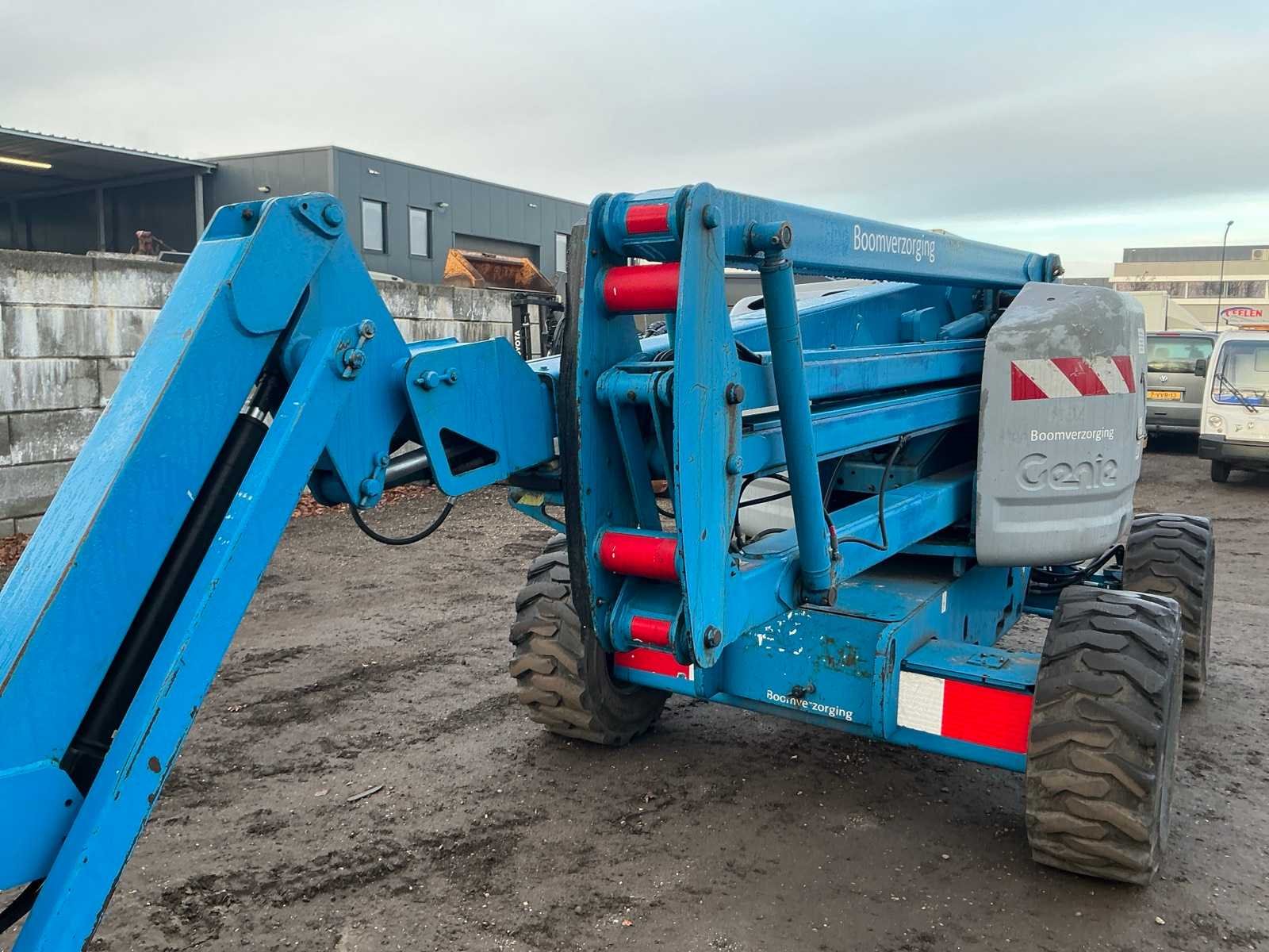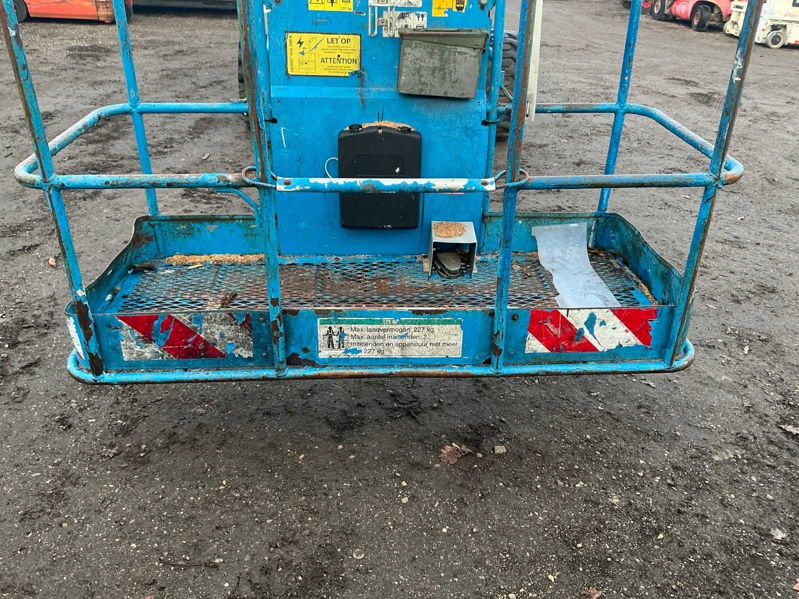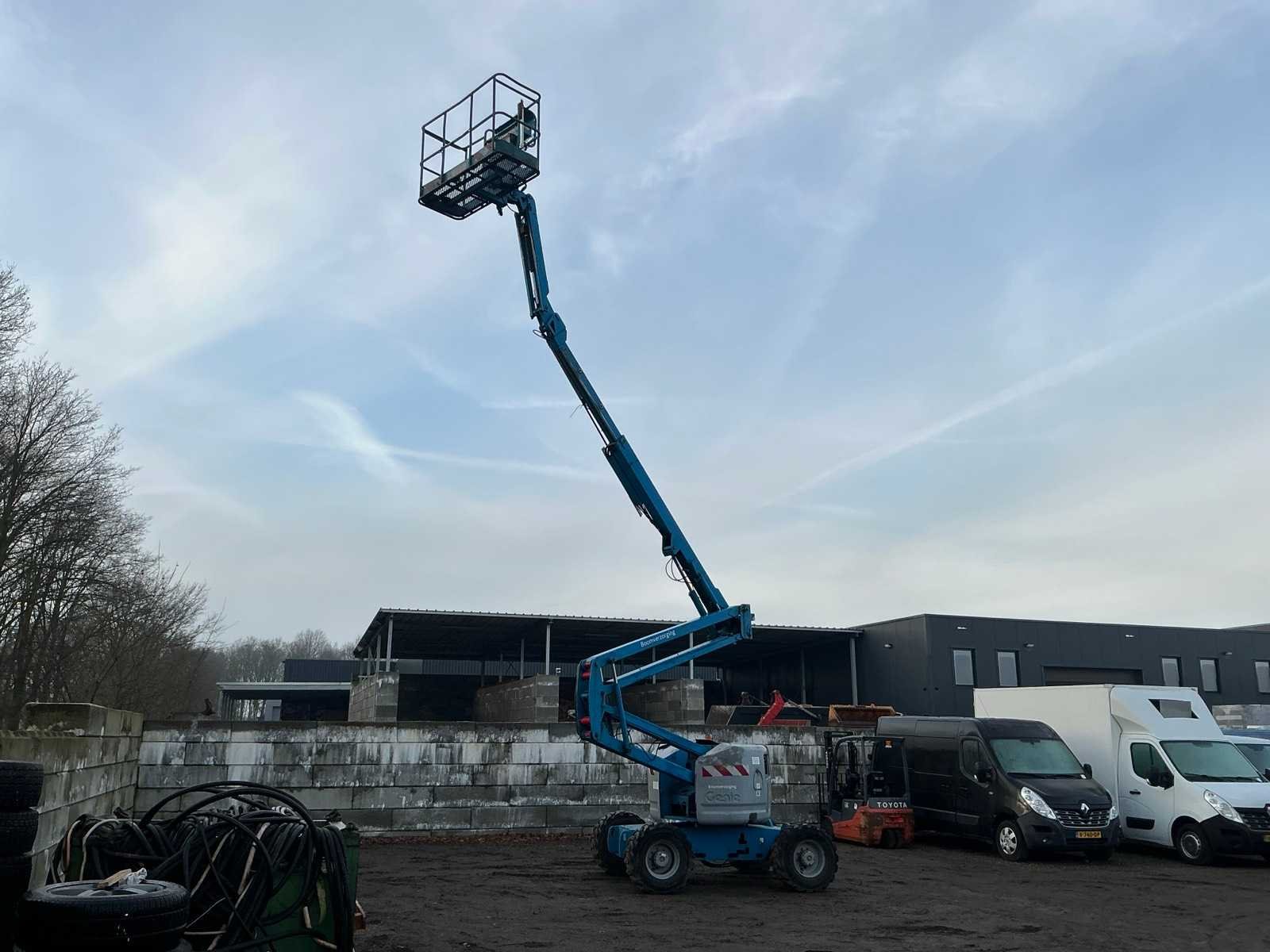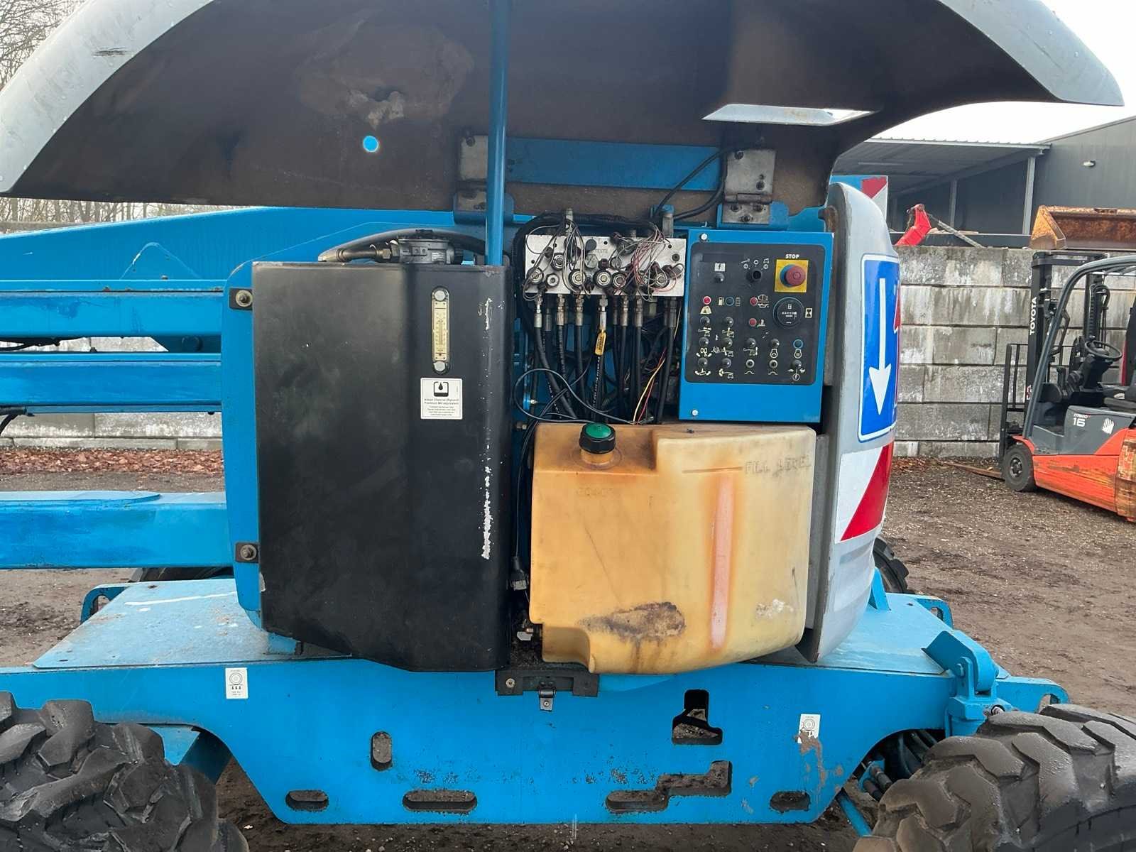 4WD, asstabilisatie, roterende opbouw, roterende werkbak, 230V stekker niet aangesloten, telescopische mast, max hefhoogte 13800mm, max hefvermogen 227kg Merk: Genie Type: Z45/25 Bouwjaar: 2003 Serienummer: Z452503-22430 Diesel: true Knikarm hoogwerker: true Werkhoogte: 13800mm Horizontale rijkwijdte: 7700mm Plateau afm. l: 750mm Plateau afm. b: 1800mm Platform capaciteit: 227kg Afgelezen urenstand: 8715 Eigen gewicht: 6219kg Totale afmeting L: 6800mm Totale afmeting Breedte: 2200mm Totale afmeting Hoogte: 2100mm