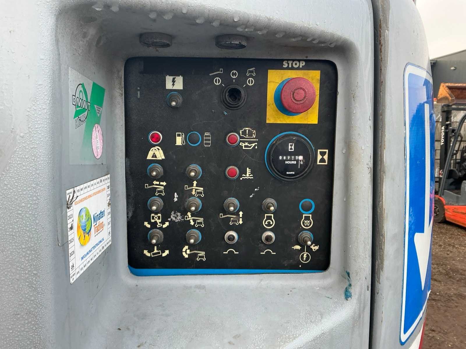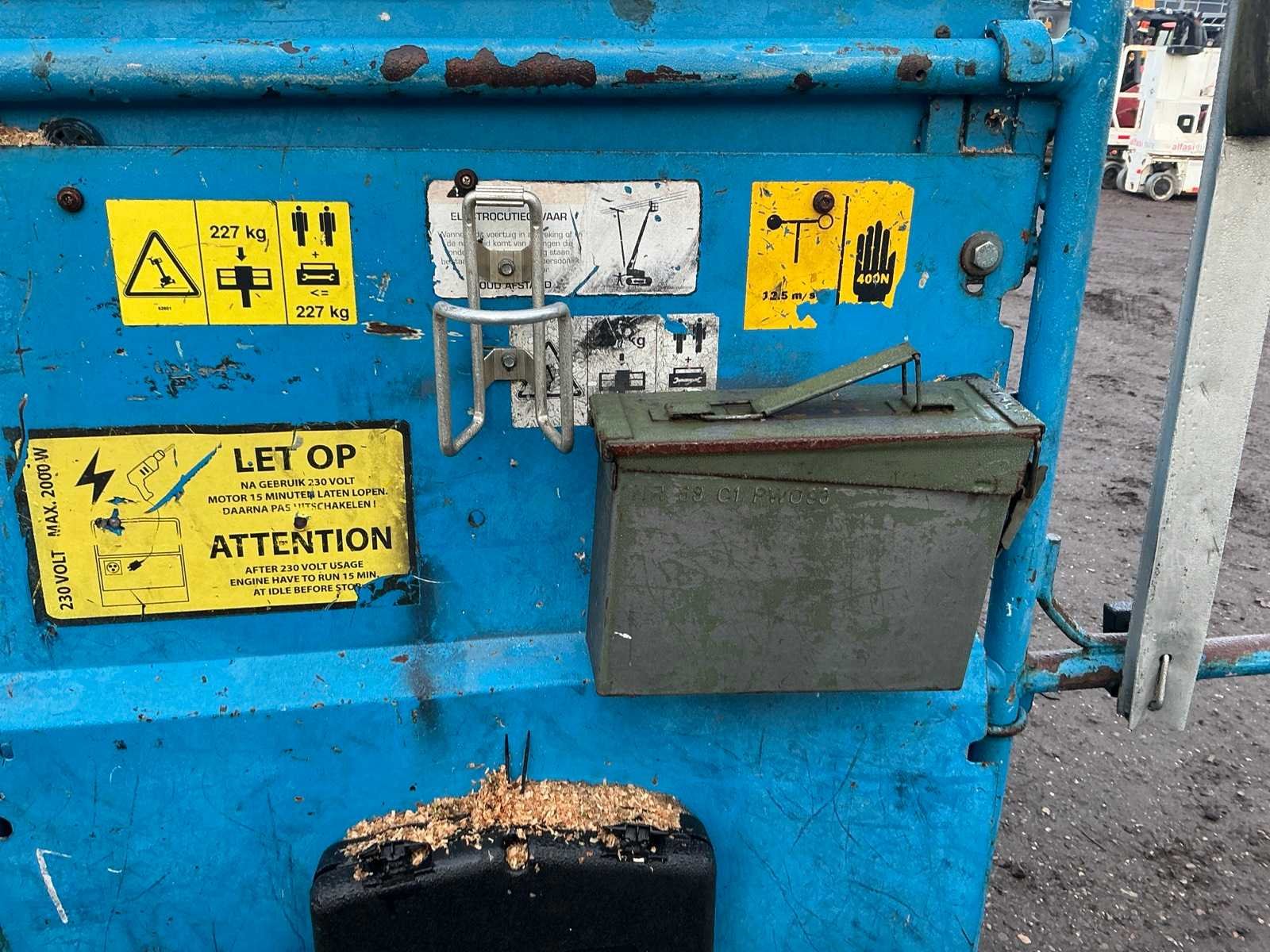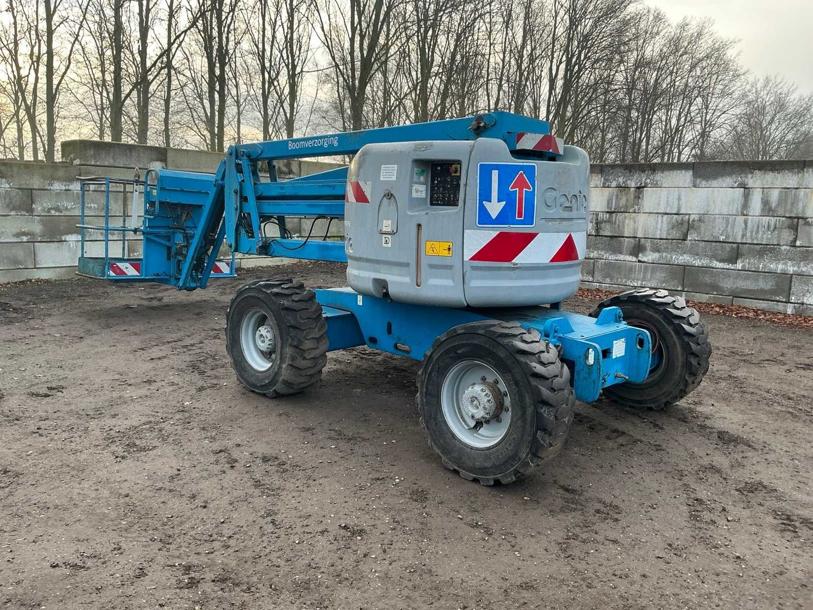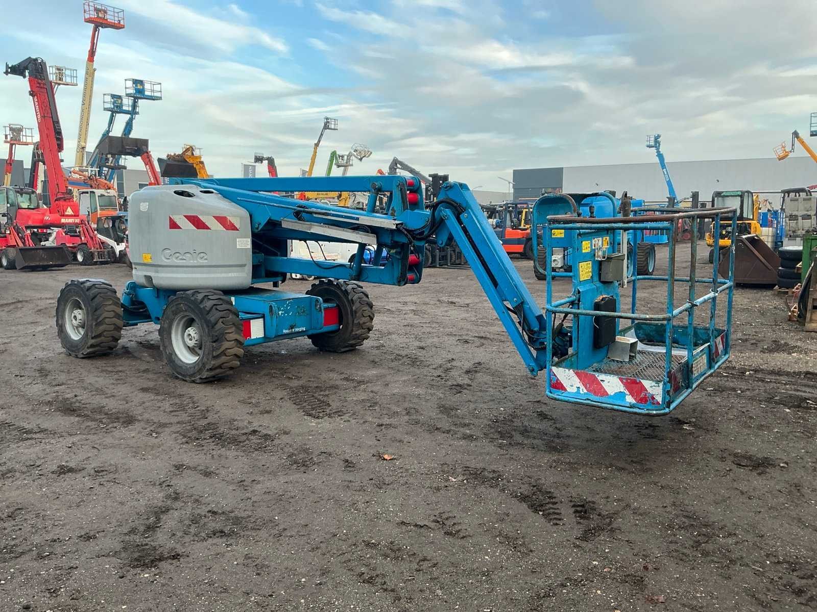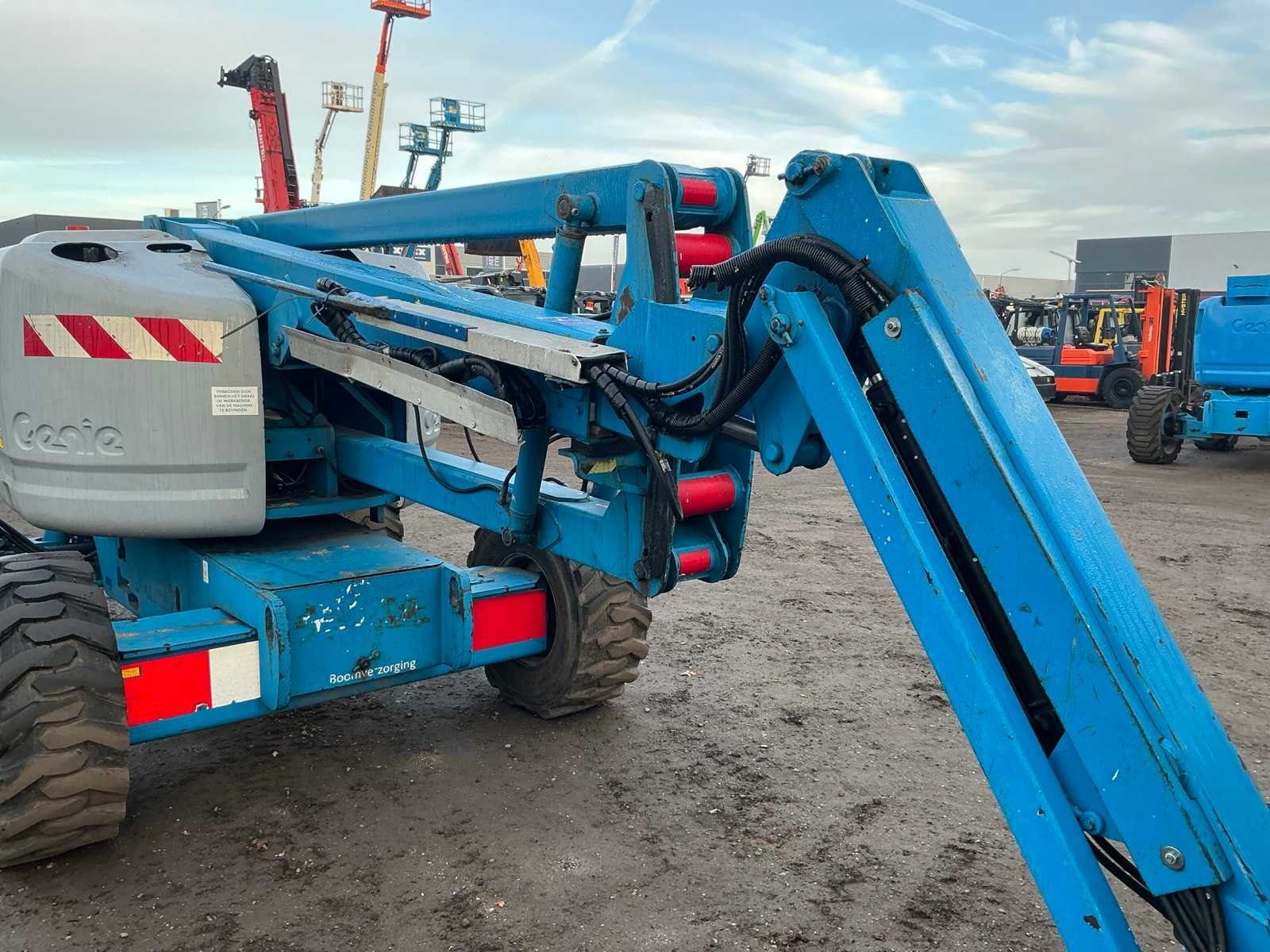 4WD, asstabilisatie, roterende opbouw, roterende werkbak, 230V stekker niet aangesloten, telescopische mast, max hefhoogte 13800mm, max hefvermogen 227kg Merk: Genie Type: Z45/25 Bouwjaar: 2003 Serienummer: Z452503-22430 Diesel: true Knikarm hoogwerker: true Werkhoogte: 13800mm Horizontale rijkwijdte: 7700mm Plateau afm. l: 750mm Plateau afm. b: 1800mm Platform capaciteit: 227kg Afgelezen urenstand: 8715 Eigen gewicht: 6219kg Totale afmeting L: 6800mm Totale afmeting Breedte: 2200mm Totale afmeting Hoogte: 2100mm