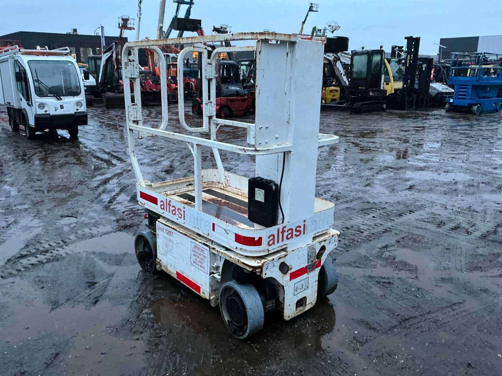 Ingebouwde lader, 110V stekker, max hefhoogte 3660mm, max hefvermogen 230kg Merk: JLG Type: 1230ES Bouwjaar: 2013 Serienummer: 0200215905 Elektrisch: true Masthoogwerker: true Werkhoogte: 3660mm Plateau afm. l: 1350mm Plateau afm. b: 750mm Platform capaciteit: 230kg Afgelezen urenstand: 452 Eigen gewicht: 790kg Totale afmeting L: 1350mm Totale afmeting Breedte: 750mm Totale afmeting Hoogte: 1630mm