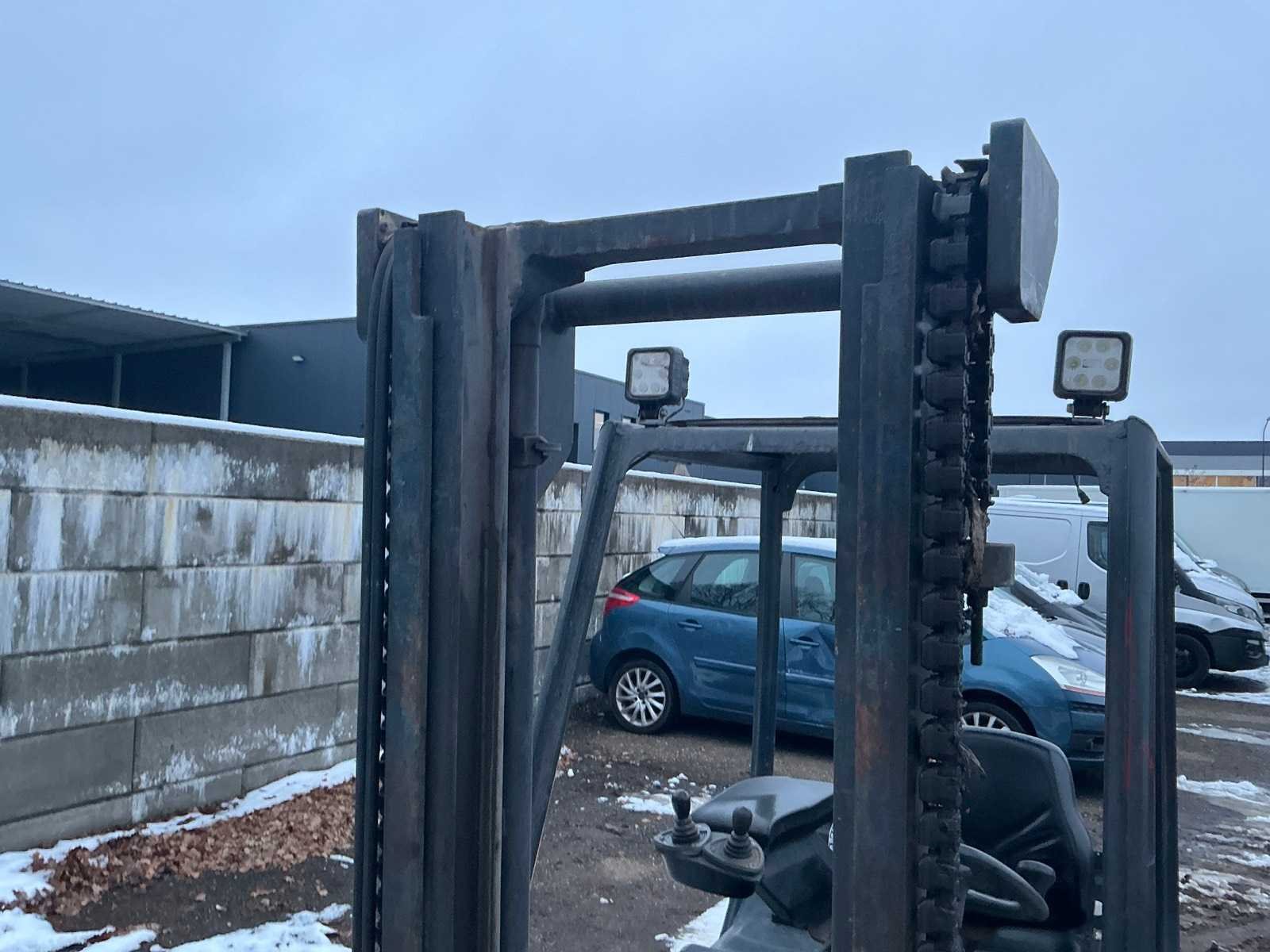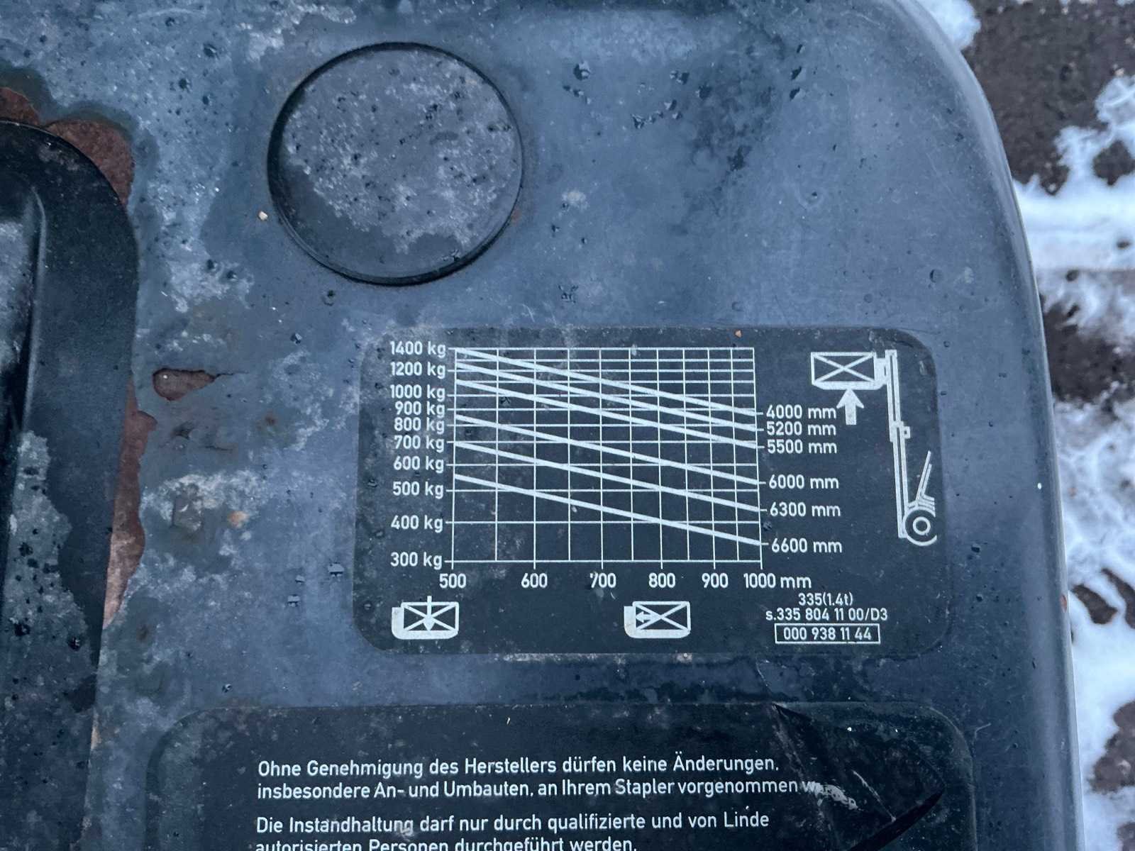 Lepels 1000mm, lepelbord 1050mm, Side shift, led verlichting, trekoog met pin 25mm, 48V accupakket, max hefhoogte 4000mm, max hefvermogen 1400kg Merk: Linde Type: E14 Bouwjaar: 1999 Serienummer: H2X335K00841 Brandstof: Elektrisch Mast: Duplex Soort band: Volrubber banden Aantal wielen: 3 Afgelezen urenstand: 4299 Side-shift: true Duplex mast: true Eigen gewicht: 2900kg Hefvermogen: 1400kg Lepellengte: 1000mm Max. hefhoogte: 4000mm Vol rubber banden: true Minimale doorrijhoogte: 2200mm Totale afmeting L: 2850mm Totale afmeting Breedte: 1050mm Totale afmeting Hoogte: 2150mm