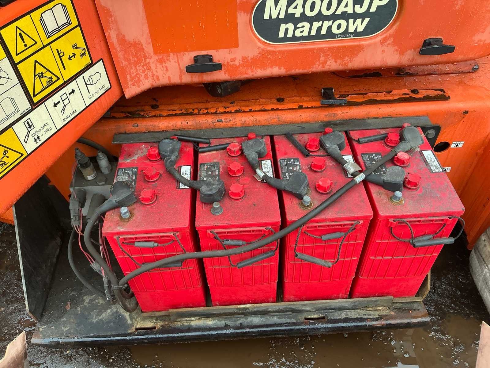Roterende opbouw, roterende werkbak, roterende Jip, telescopische mast, 48V accupakket Merk: JLG Type: M400 AJP Narrow Bouwjaar: 2008 Serienummer: 0300130846 Diesel: true Elektrisch: true Knikarm hoogwerker: true Werkhoogte: 12190mm Horizontale rijkwijdte: 6830mm Plateau afm. l: 750mm Plateau afm. b: 1530mm Platform capaciteit: 230kg Eigen gewicht: 6900kg Totale afmeting L: 6900mm Totale afmeting Breedte: 1500mm Totale afmeting Hoogte: 2100mm