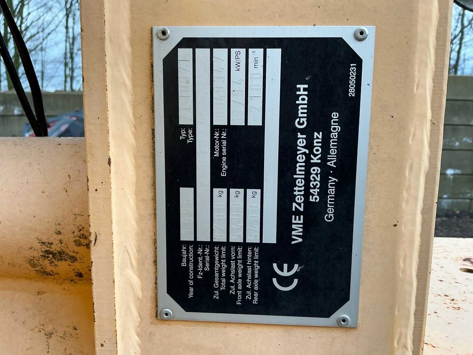 Let op; motor lekt olie en loopt slecht Lepels 1000mm, lepelbord 1300mm, hydraulische wissel, 3e functie, trekoog, werkverlichting, verwarming Merk: Zettelmeyer Type: ZL1002i Bouwjaar: 1995 Serienummer: 2201024 Merk motor: Perkins Kenteken: TXR-93-N Motorvermogen (kW): 69kW Aantal cilinders: 4 Brandstof: diesel Bedrijfsgewicht: 8200kg Bandenmaat: 445/70 R24 Cabine: true Afgelezen urenstand: 11643 Eigen gewicht: 8200kg Totale afmeting L: 5000mm Totale afmeting Breedte: 2200mm Totale afmeting Hoogte: 2800mm
